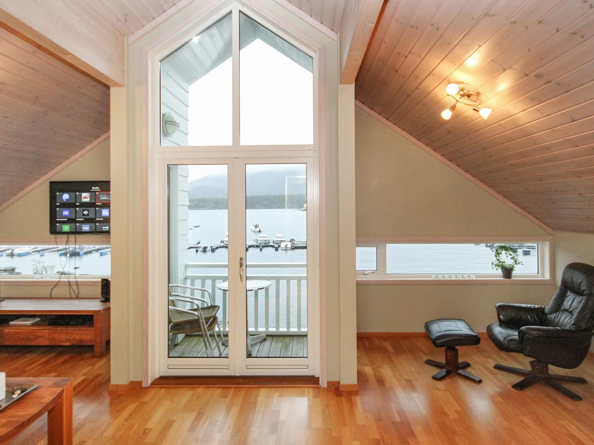 Das Ferienhaus ist geschmackvoll mit modernem Design und hohem Standard eingerichtet. Das Esszimmer grenzt an die Küche an und hier können Sie beim Essen die herrliche Aussicht auf den Fjord und den Hafen genießen. Internet: Breitband, WLAN. Der moderne Kamin sorgt für eine besonders angenehme Atmosphäre.