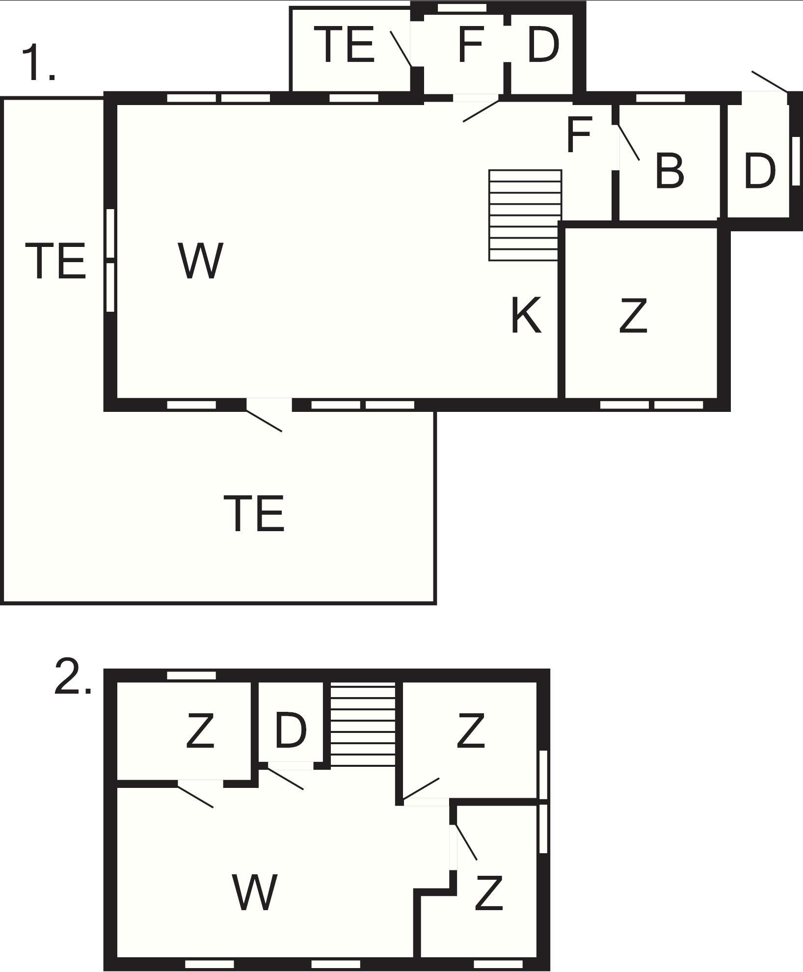Im Haus gibt es unten einen geräumigen Küchen-/Wohnbereich mit einem Holzofen für das Familienleben. Zudem zweites Wohnzimmer im Dachgeschoss des Hauses mit gemütlicher Sitzecke. Im Parterre ein Schlafzimmer mit Doppelbett. Die drei Schlafzimmer in der oberen Etage verfügen über je ein Einzelbett. Zudem steht im Außenbereich eine 27 m2 große Terrassenfläche zur Verfügung. Im TV auch einige deutsche Sender zur Auswahl über Astra1. WLAN-Kapazität zum Surfen.