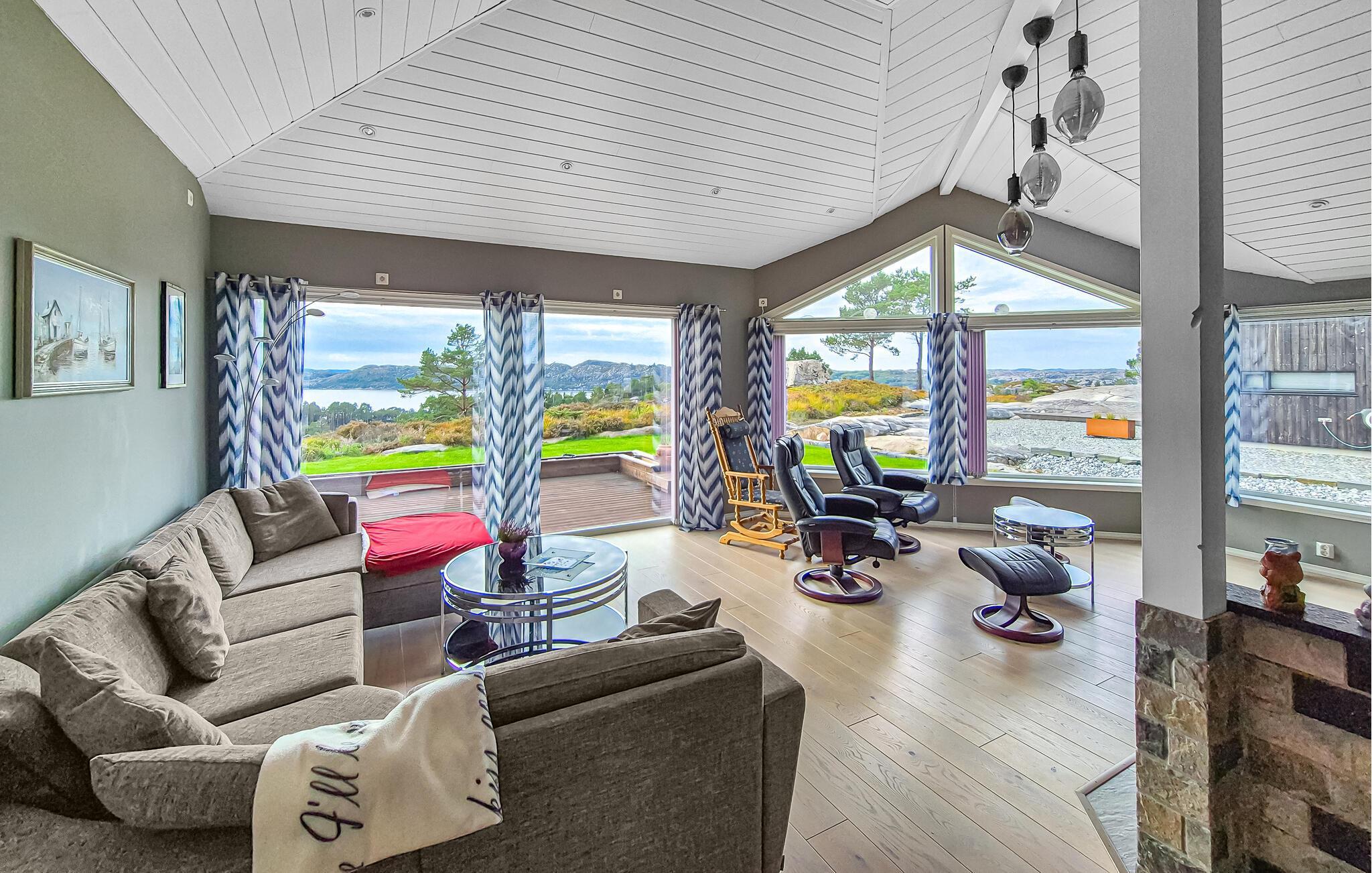 Gönnen Sie sich einen Traumurlaub in diesem Ferienhaus mit Whirlpool und bezauberndem Blick auf den Fjord.