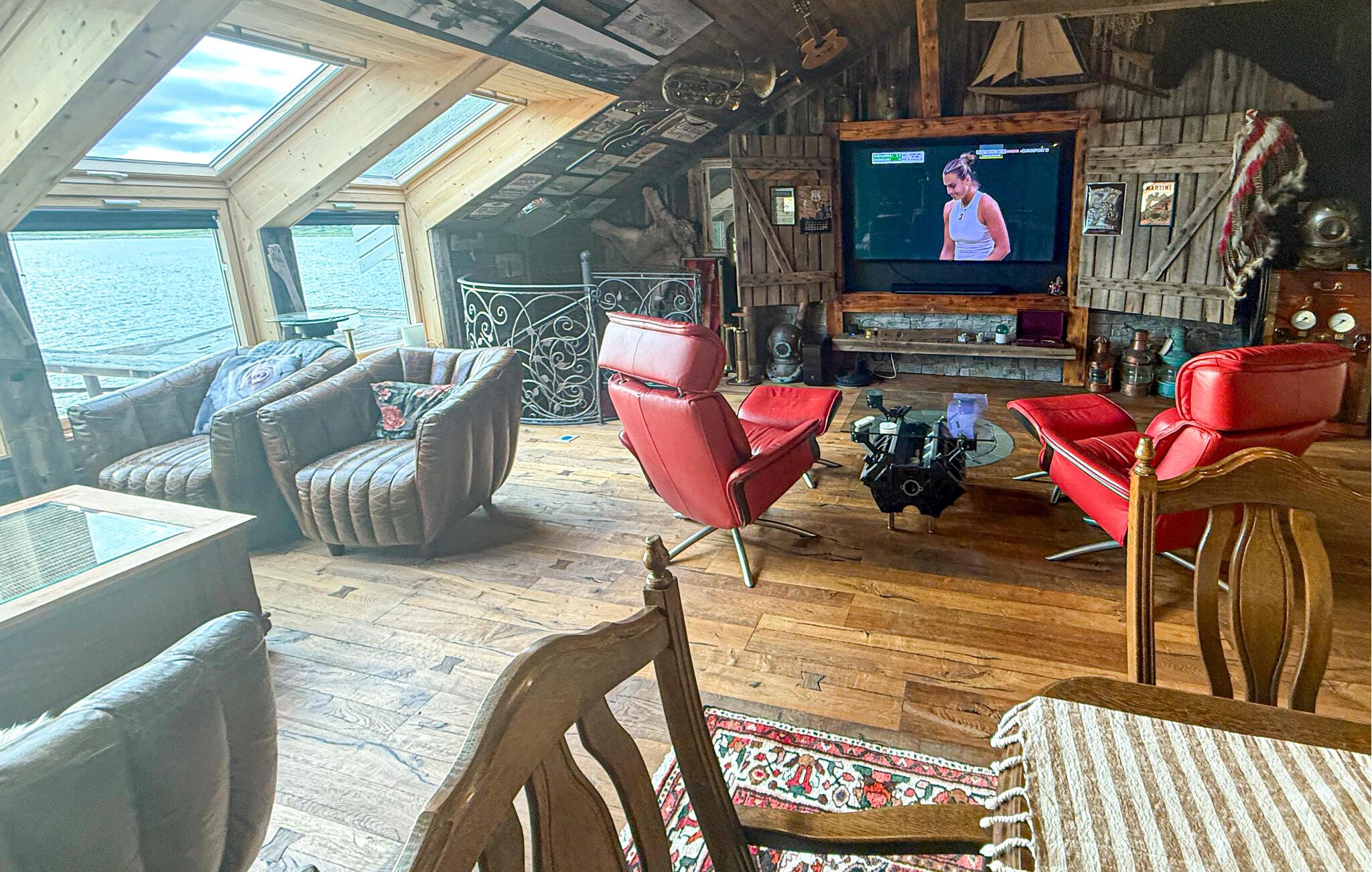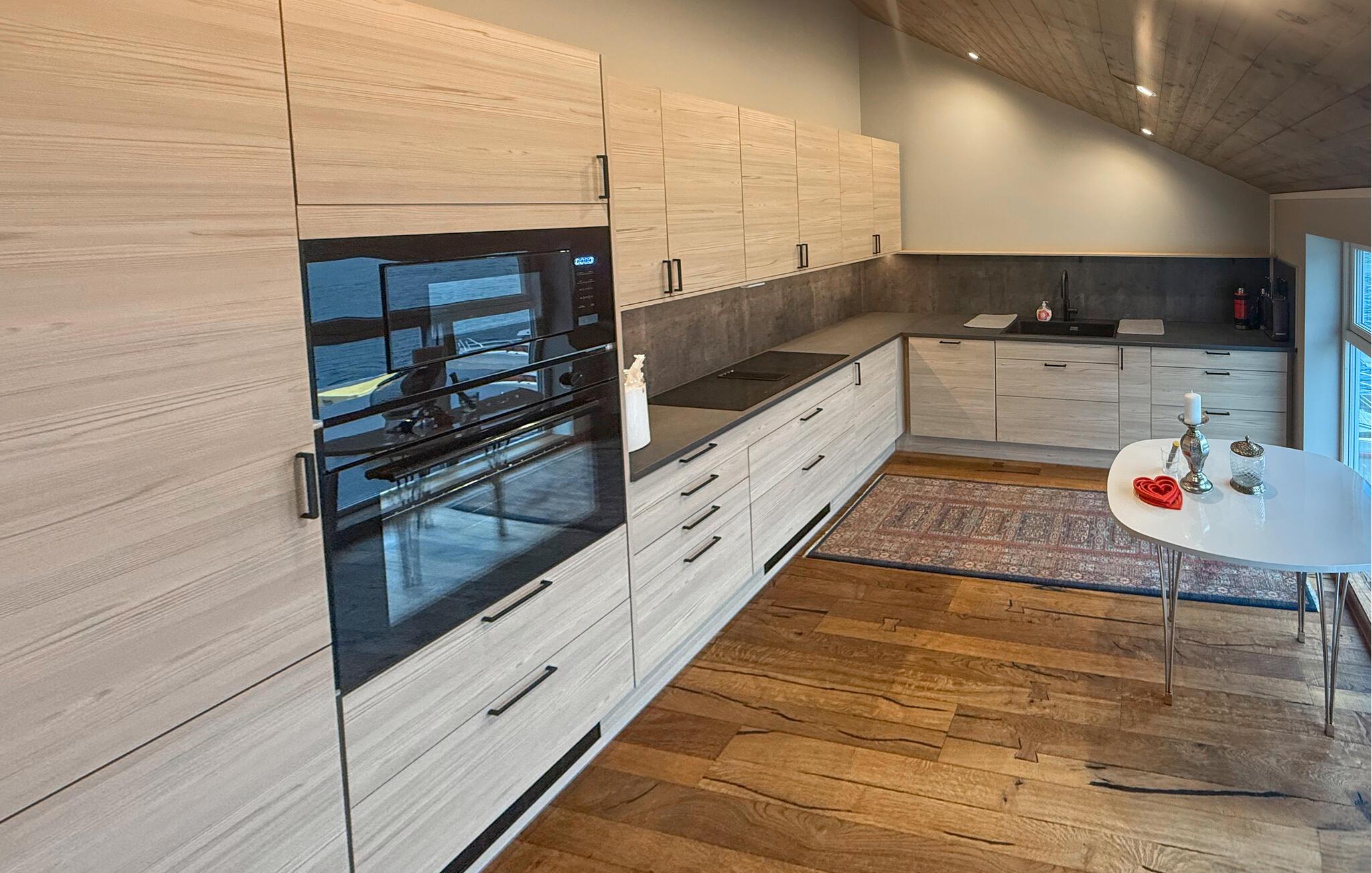 Diese geräumige und originell eingerichtete Ferienwohnung begrüßt Sie mit einer behaglichen, rustikalen Atmosphäre und bietet Ihnen ein komfortabel ausgestattetes Refugium direkt am Wasser. Zaubern Sie leckere Gerichte mit Blick auf den Fjord, finden Sie für harmonische Mahlzeiten im heimeligen Essbereich zusammen und machen Sie es sich nach einem langen Tag an der frischen Luft für einen Film oder gute Gespräche bei einem Glas Wein im gemütlichen Wohnzimmer bequem.