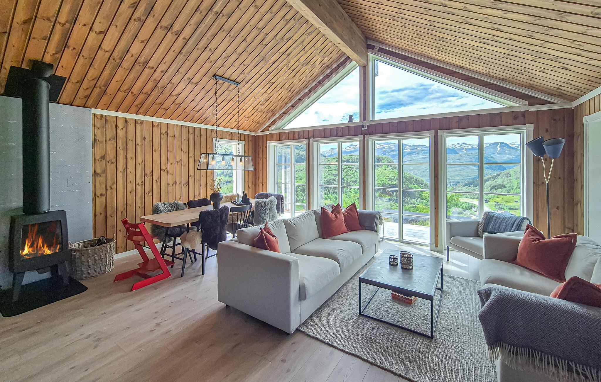 Das einladende Haus empfängt Sie inmitten einer wunderschönen Landschaft und ist der ideale Ort für einen Familienurlaub mit Aktivitäten in der Natur. Lassen Sie schon beim Aufwachen den Blick über die pittoreske Bergwelt schweifen und machen Sie es sich in den modern möblierten Räumen so richtig gemütlich. Abends lädt das Sofa zu einem Filmabend oder guten Gesprächen in geselliger Runde am Kaminofen ein.