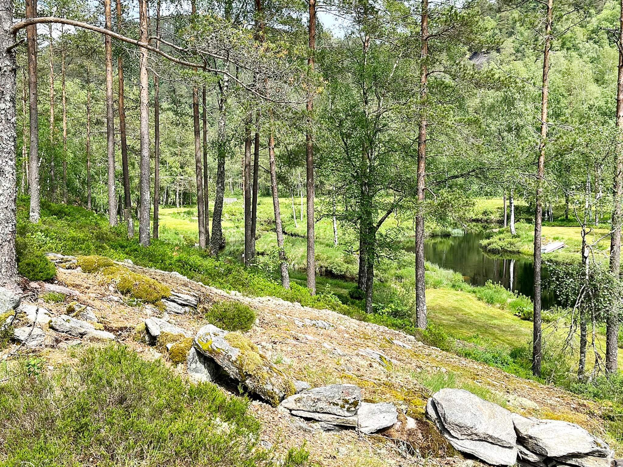 Gemütliches Ferienhaus mit idyllischer Lage direkt an einem kleinen Weiher und mit kleinem Wasserfall unterhalb des Hauses. Hier wohnen Sie wirklich mitten in der Natur! Das Ferienhaus liegt im Wald, am Rande des Gehöfts, ohne weitere Hütten in der Nähe.