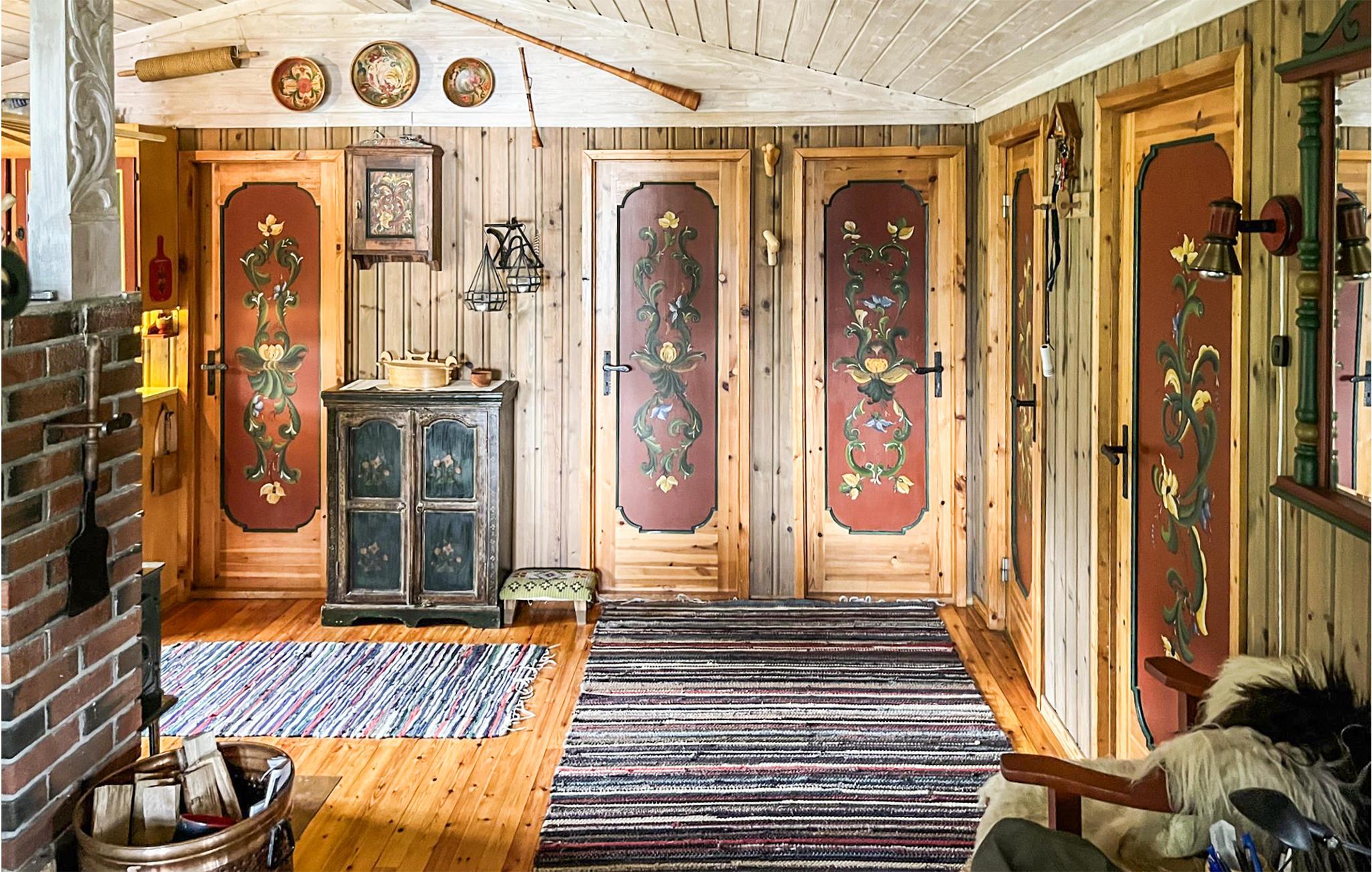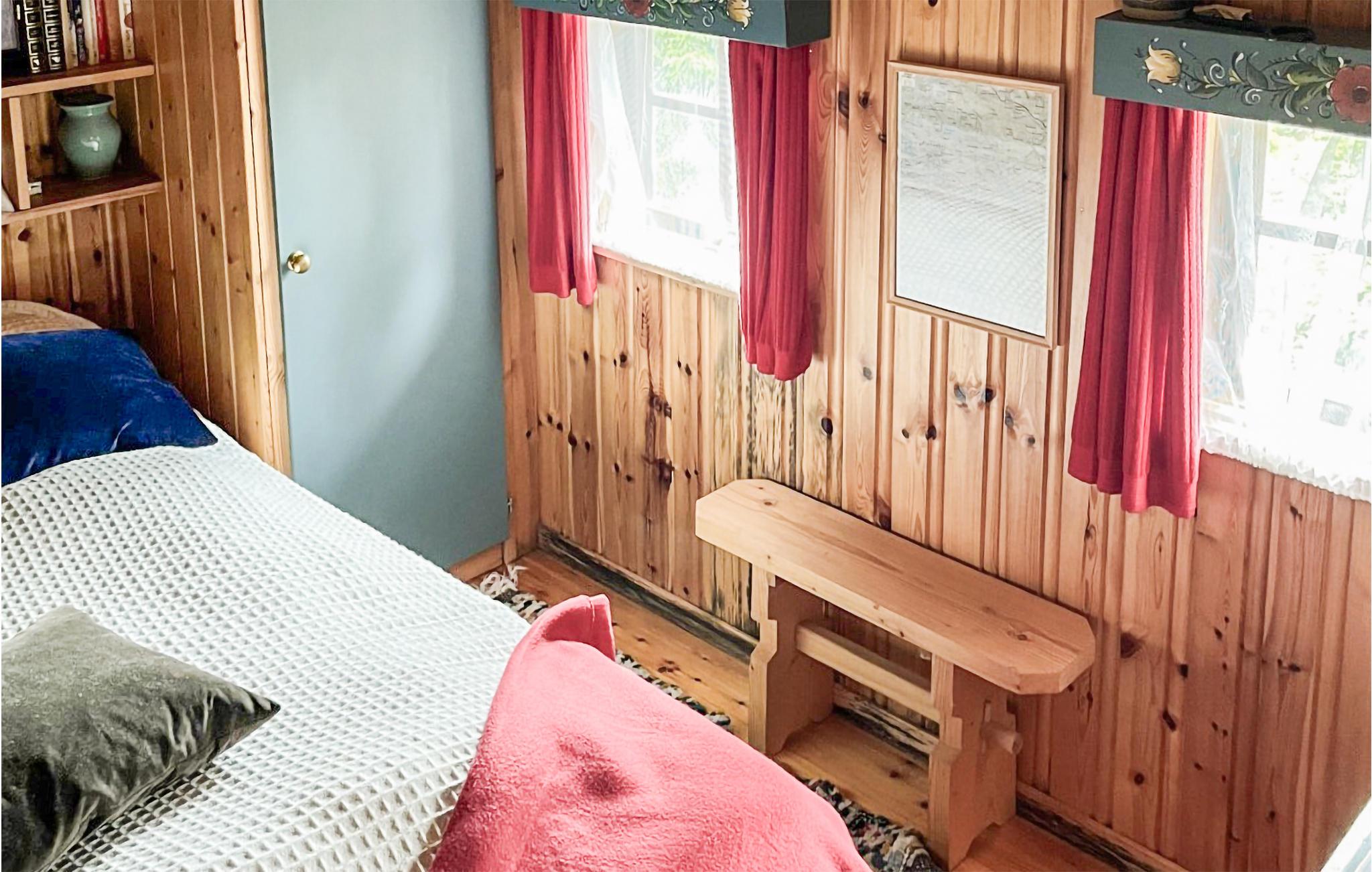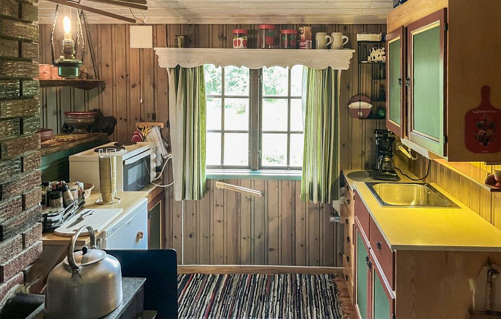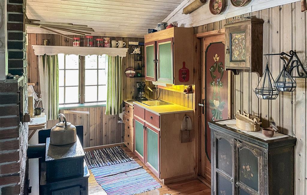 Dieses Ferienhaus, dicht am Wald gelegen, mit heimeliger Atmosphäre ist eine schöne Basis für Aktivurlauber und Angler! Das Haus ist voll von gemütlichem Nippes und kreativen Details wie den schön verzierten Türen. Zeichnen Sie morgens am Esstisch Ihre Wanderroute auf die Karte und los geht´s! Nach einem langen Tag lädt der Couchtisch zu einem lustigen Nachmittag mit Brettspielen ein und vielleicht plaudern Sie heute Abend auf dem Sofa über Ihre morgige Angeltour? Wer im Urlaub zurück zur Natur finden will, ist hier genau richtig. Vor der Tür erwarten Sie eine verträumte Berglandschaft zum Entdecken und ein wunderschöner See zum Angeln und Baden.