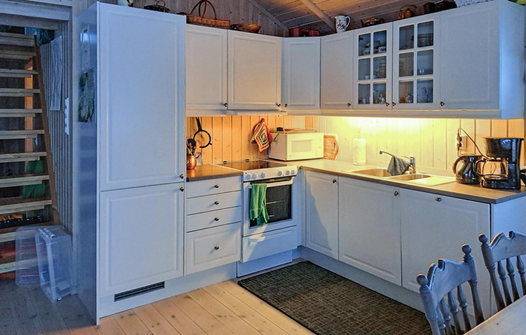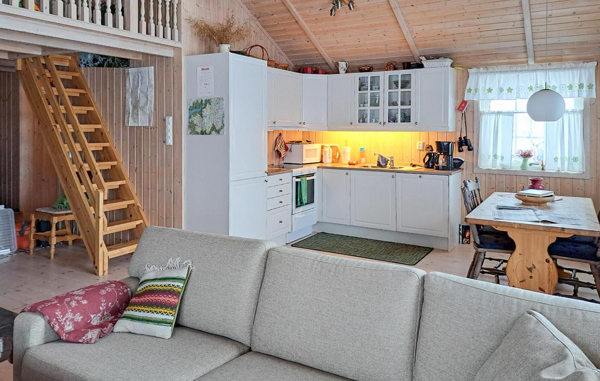 Willkommen in diesem urgemütlichen Ferienhaus in ruhiger Lage. Freuen Sie sich auf heimelige Kochabende in der offenen Küche und harmonische Mahlzeiten im holzgetäfelten Essbereich. Entfachen Sie den Kaminofen und nehmen Sie für einen geselligen Spieleabend oder entspannte Lesestunden auf der bequemen Couch Platz, während das Knistern des Feuers für zusätzliche Behaglichkeit sorgt.