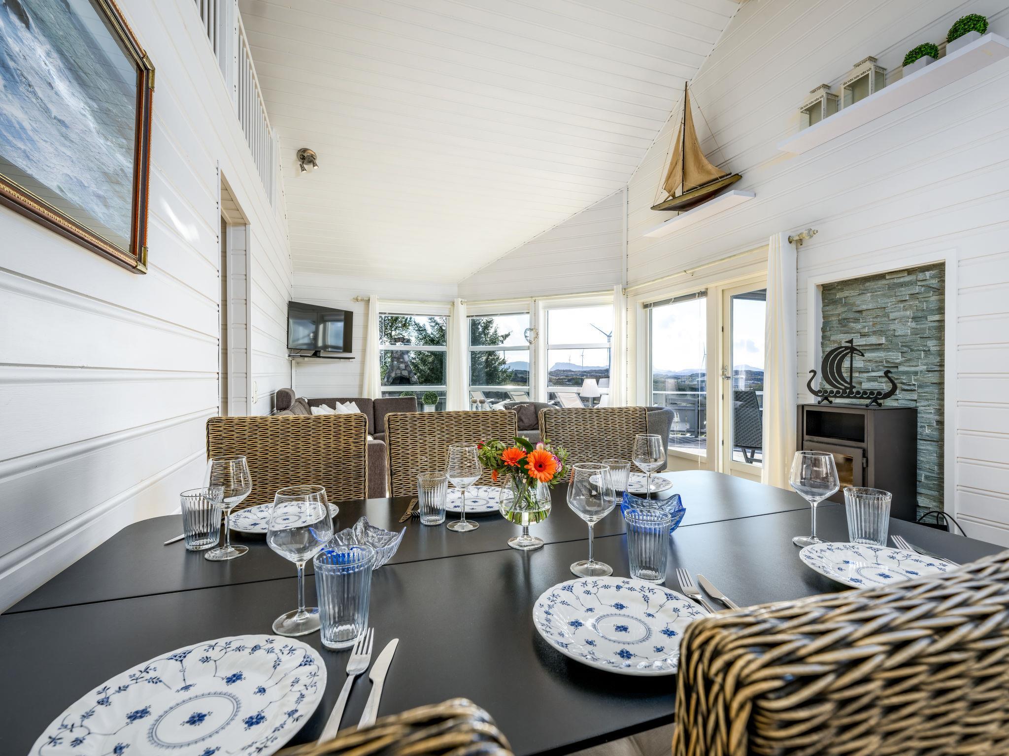 "Sjøbuvågen", 5-Zimmer-Haus 110 m2 auf 2 Stockwerken. Hell, geschmackvoll und gemütlich eingerichtet: Wohn-/Esszimmer mit Schwedenofen, Esstisch, Sat-TV und Internationale TV-Sender. Ausgang zur Terrasse. 2 Zimmer, jedes Zimmer mit 1 franz. Bett (150 cm, Länge 200 cm). 1 Zimmer mit 1 Bett (90 cm, Länge 200 cm). Küche (Backofen, Geschirrspüler, 4 Glaskeramikplatten, Toaster, Wasserkocher, Mikrowelle, Tiefkühler, elektrische Kaffeemaschine). Dusche/WC. Obergeschoss: (steile Treppe) abgeschrägte, offene Galerie mit 2 Schlafmöglichkeiten (90 cm, Länge 200 cm). E-Heizung. Holzdielenboden. Terrasse 110 m2 teilweise überdacht Terrasse 20 m2, überdacht. Terrassenmöbel, Gartengrill. Sicht auf das Meer. Zur Verfügung: Waschmaschine. Bitte beachten: Nichtraucher-Haus. Private Bootsanlegestelle. Rauchmelder, Feuerlöscher. Gefriertruhe ca. 300 l. Anstelle eines abgeschlossenen Schlafzimmers befinden sich manche Schlafplätze in einem offenen Bereich (Galerie, Nische etc.). 924531169