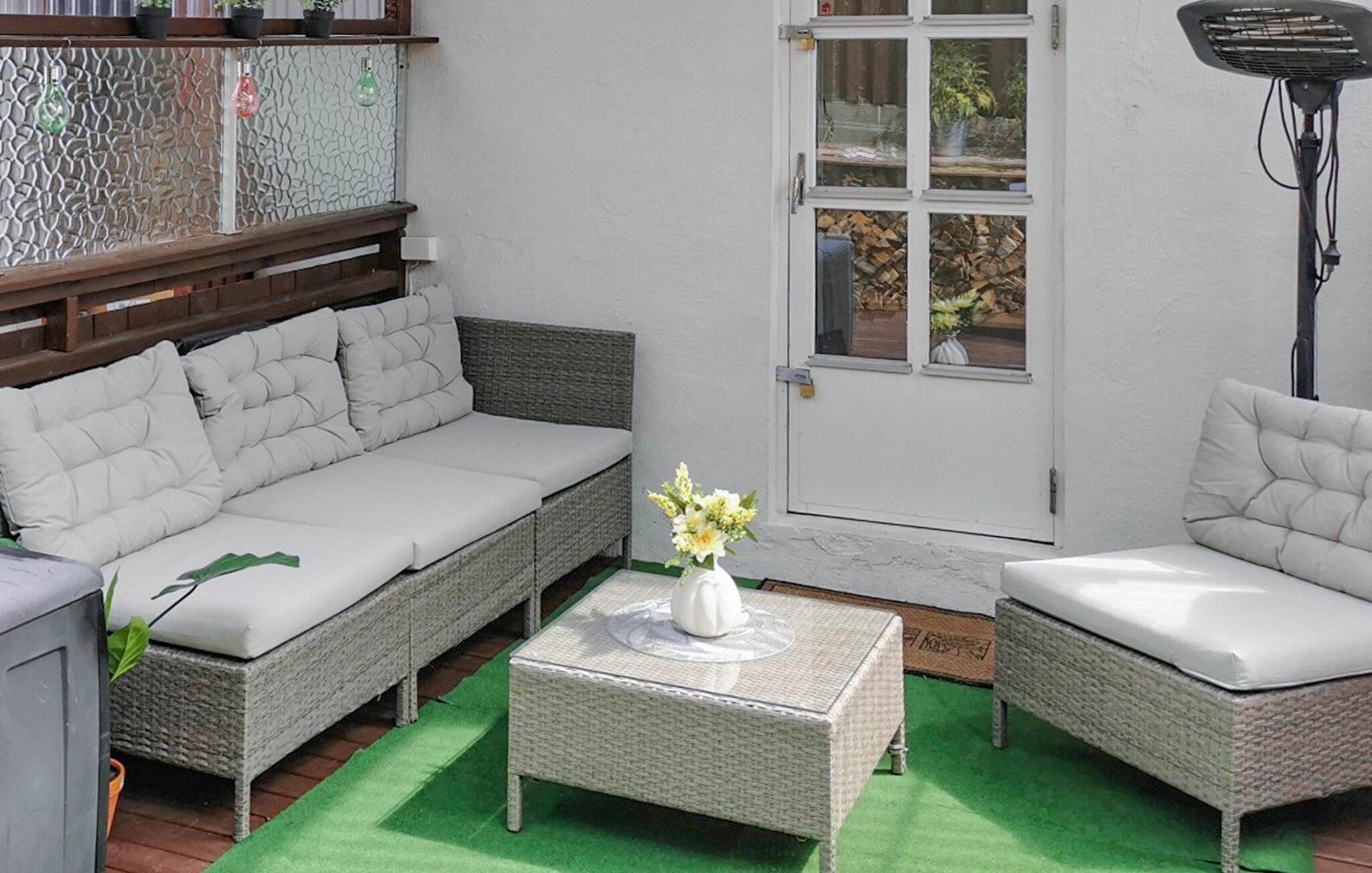 Ihre geschützte Terrasse bietet eine behagliche Lounge-Ecke, in der Sie morgens mit einem duftenden Kaffee in den Tag starten können. Entfachen Sie den Grill und lassen Sie abends das Erlebte bei einem Glas Wein unter freiem Himmel ausklingen.