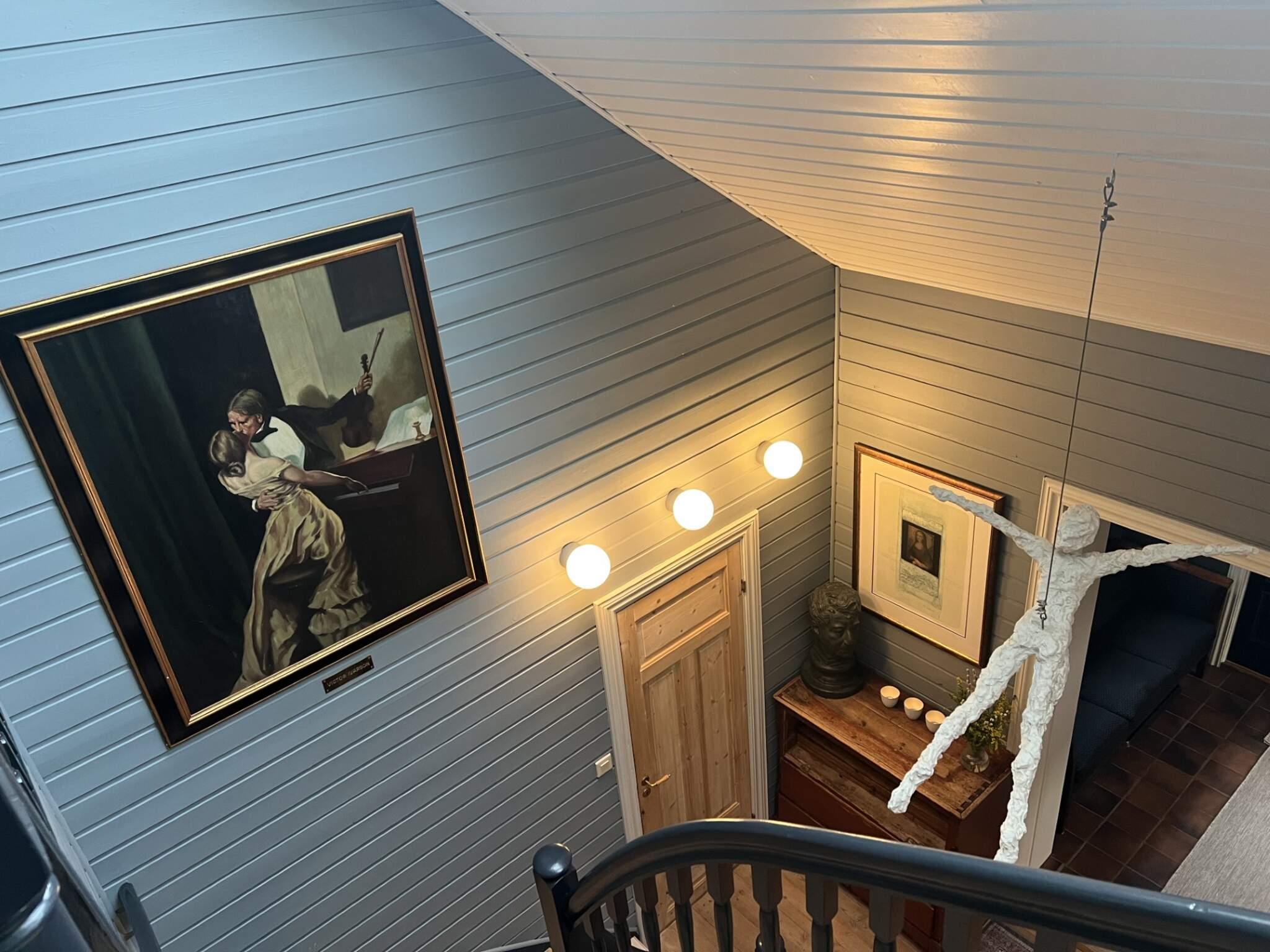 Im Erdgeschoss befinden sich Küche und Esszimmer, Wohnzimmer und Bibliothek. Es gibt einen Fernseher mit Altibox, Internet inklusive. Auf dieser Etage gibt es ein Schlafzimmer mit einem Doppelbett sowie eine Toilette und eine Waschküche mit Dusche. Schöne Beschichtung außen. Das Anwesen besteht aus mehreren Gebäuden und Sie wohnen in der Nähe Ihres Nachbarn, verfügen jedoch über eine eigene, geschützte Terrasse sowie einen separaten Terrassenbereich außerhalb der Küche.