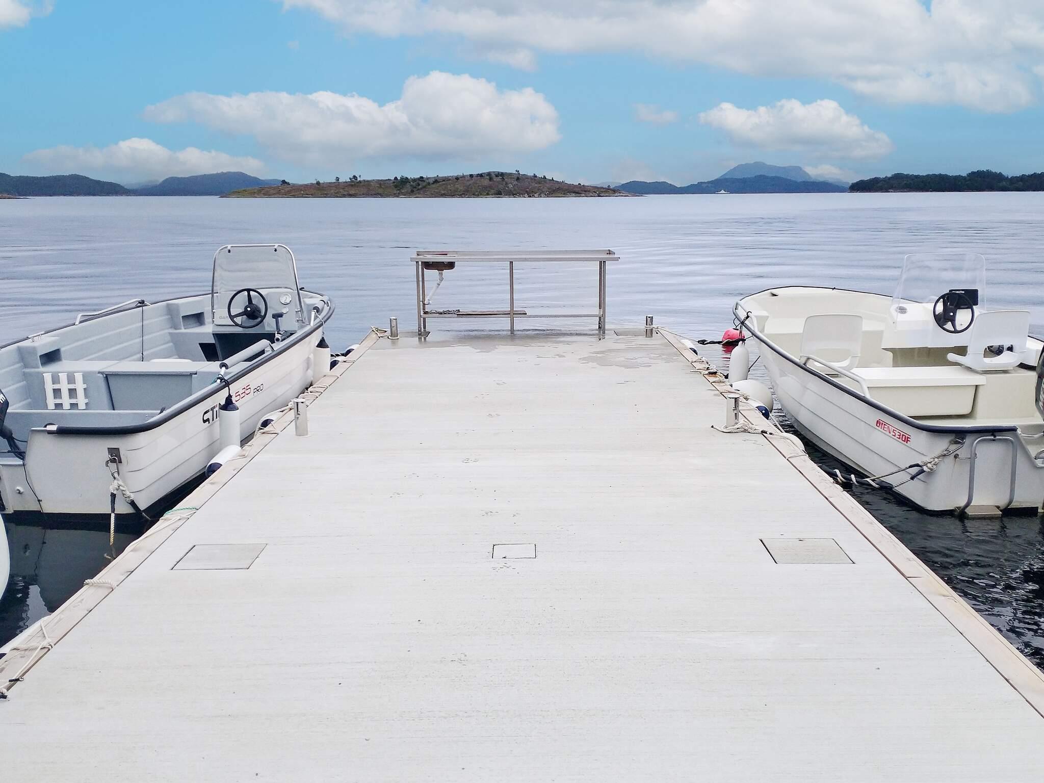 Bei Anmietung des Bootes sind Schwimmwesten inklusive. Es stehen in jeder Wohnung 100 l Gefrierkapazität zur Verfügung, außerdem Zugang zu weiteren Gefrierkapazitäten vor Ort. Die Entfernung zu Fjord und Booten beträgt vom Ferienhaus nur 200 m. Überdachte Filetierbank m. Licht/Wasser vorhanden. Ab Februar fängt man im Fjord viel Hering Kabeljau, Seelachs und Pollack und ab Juni gesellt sich die Makrele noch dazu.