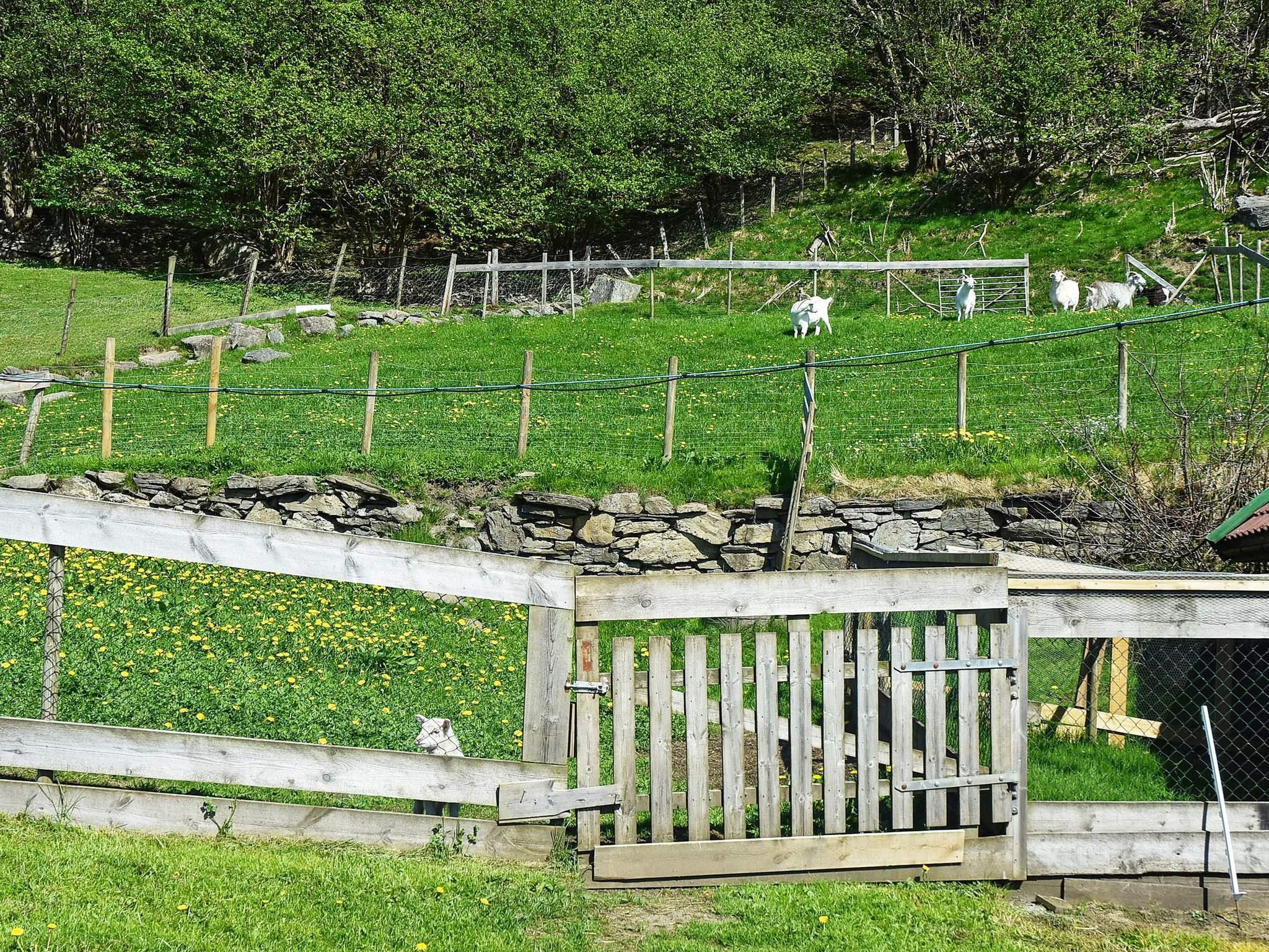 Seichtes Badeufer mit Kieselsteinen etwa 200 m entfernt. Weitere Badeufer findet man auf den vorgelagerten Inseln. Das etwa 1.000 m2 große Rasengrundstück nutzt man gemeinschaftlich. Kaufmannsladen etwa 10 km weiter, der nächste kleine Ort, Våge, ist etwa 30 km entfernt. Parkplatz etwa 20 m von der Wohnung. Vor Ort auf dem Hof werden Schafe und Ziegen gehalten.