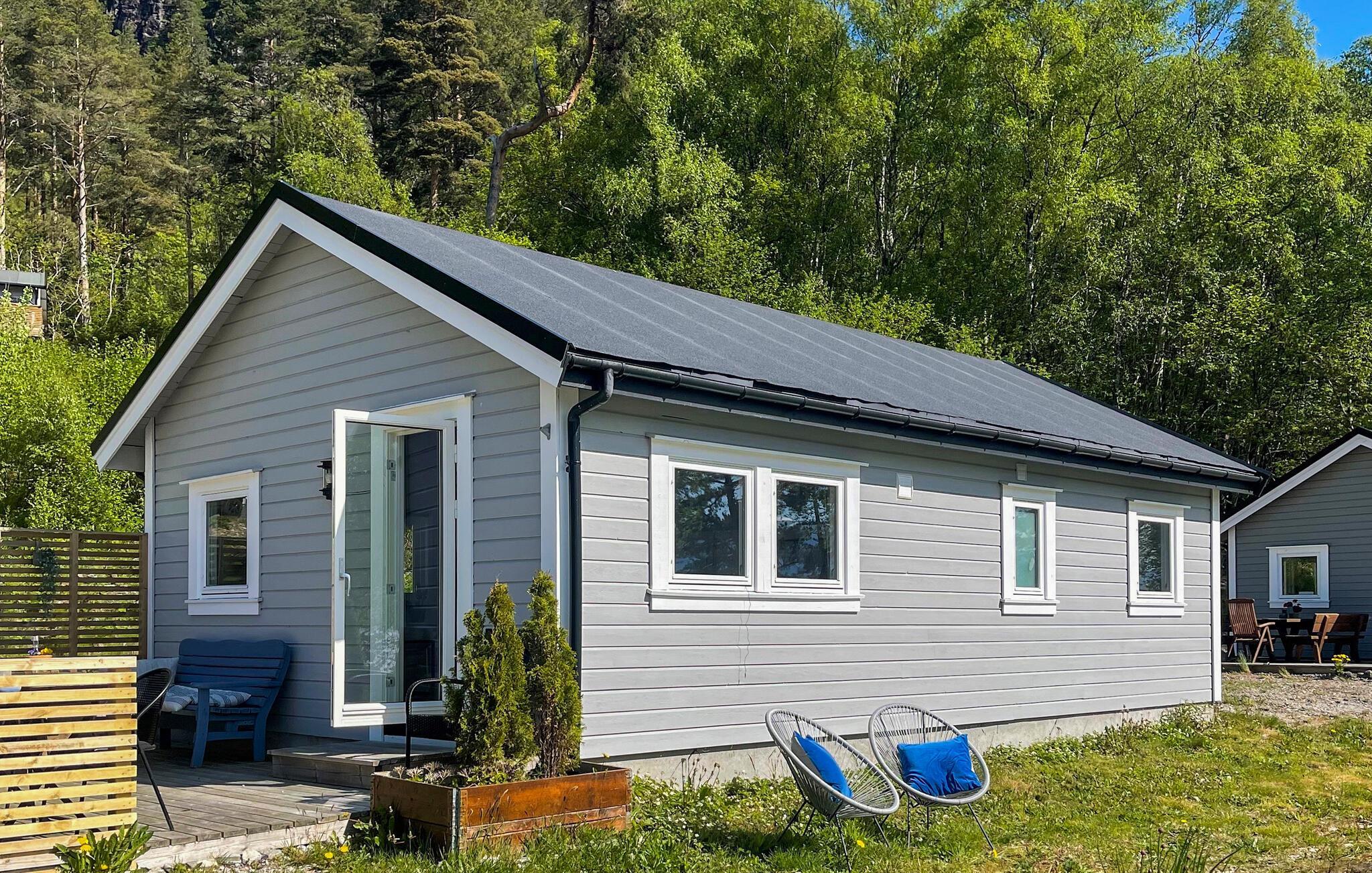 Entspannen Sie sich in diesem gemütlichen Ferienhaus direkt am Badestrand mit Blick auf den Fjord.