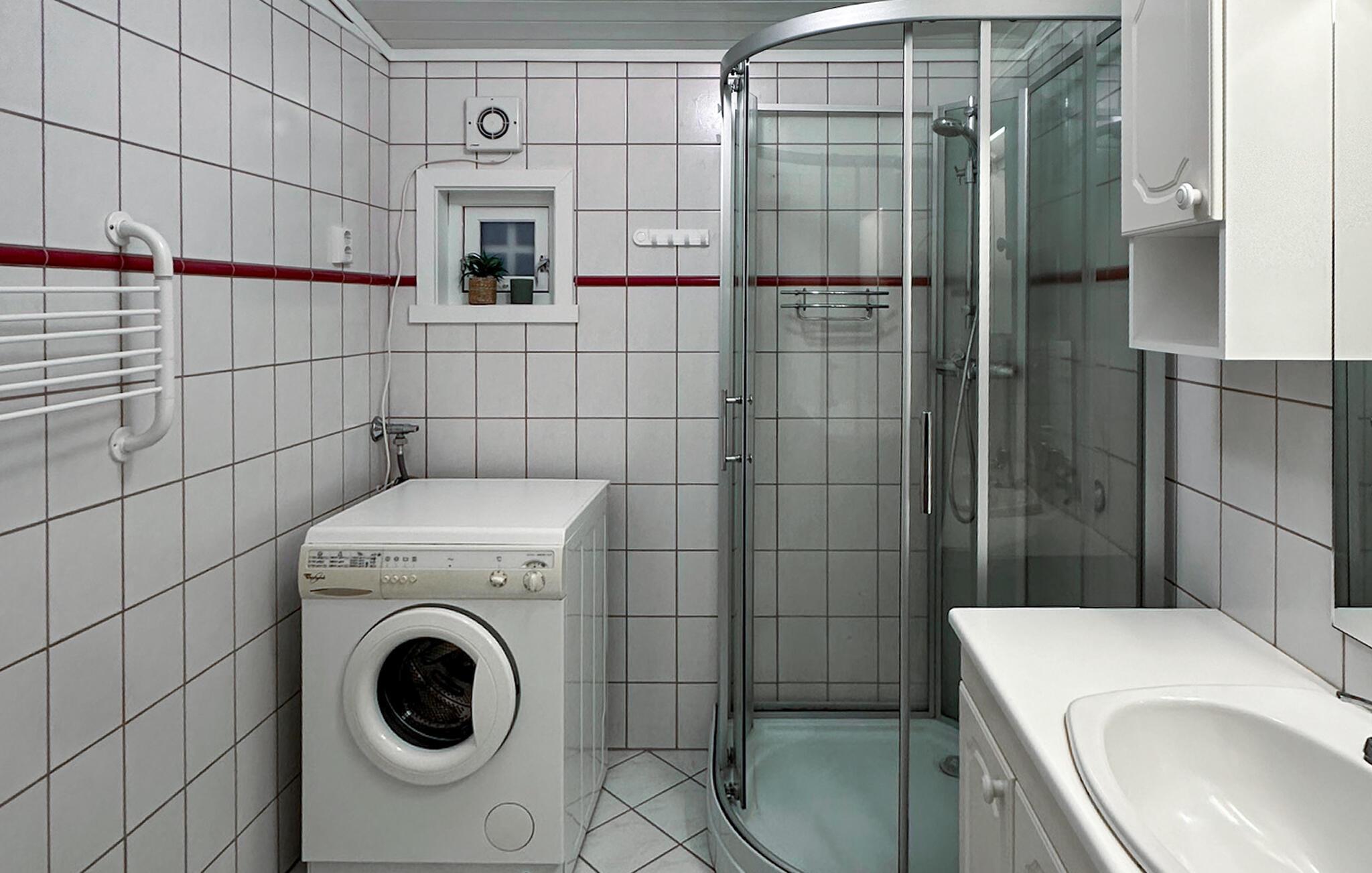 Badezimmer 4m2 (nr. 1) - WC. Warmes und kaltes Wasser. Dusche