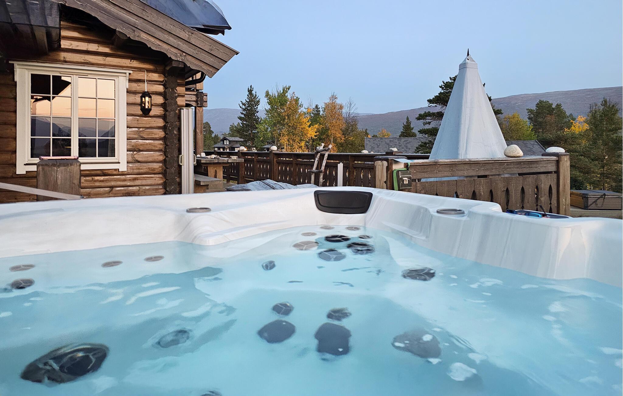 Verbringen Sie einen Traumurlaub in diesem luxuriösen Ferienhaus mit Whirlpool und Panoramablick.