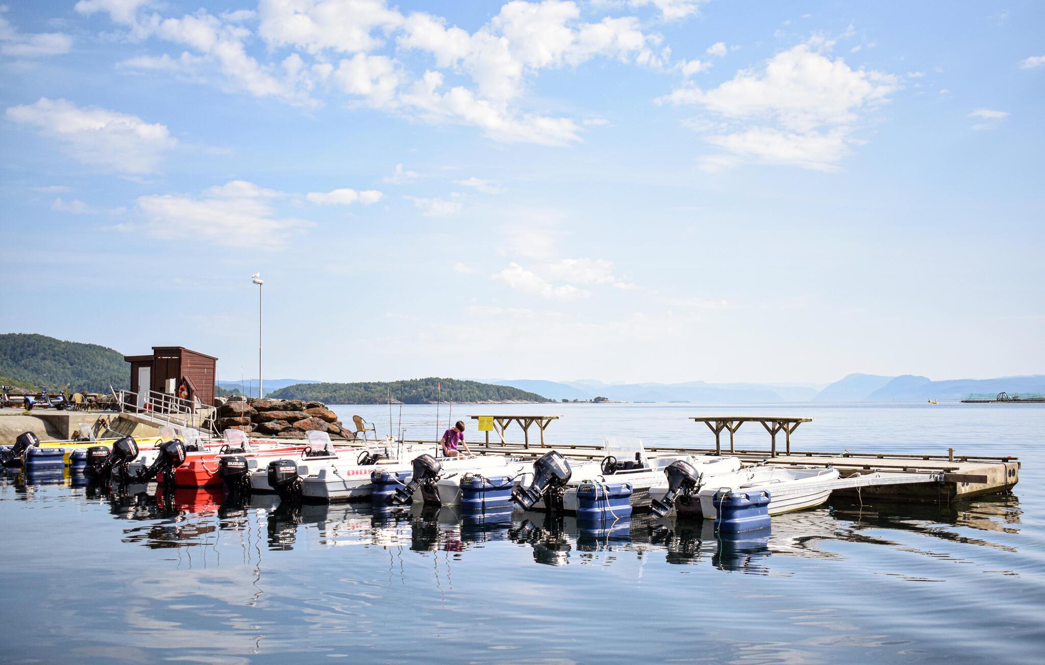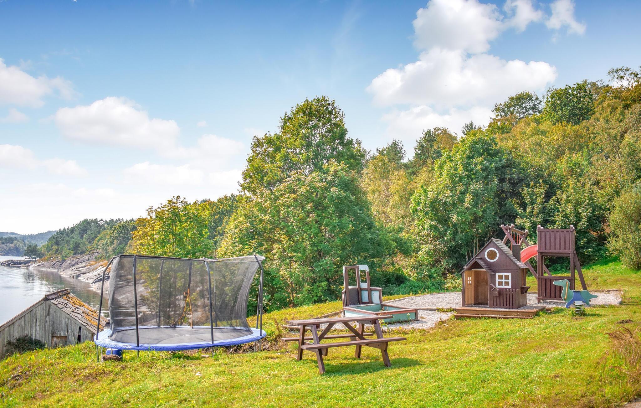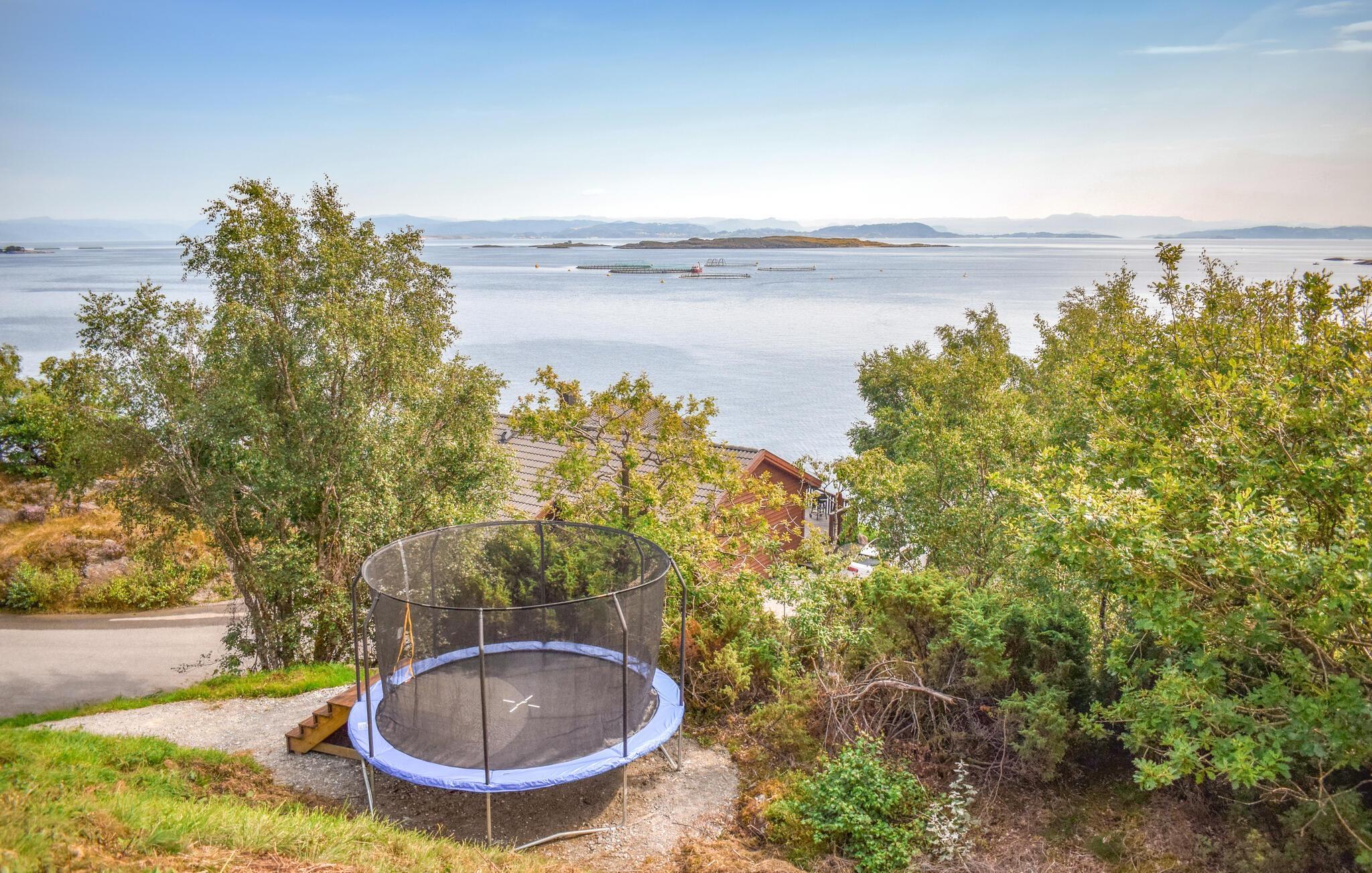 Treten Sie schon morgens ins Freie, genießen Sie den herrlichen Blick auf den weiten Skjoldafjord und springen Sie für eine Erfrischung in den Whirlpool. Ein kurzer Weg führt Sie hinunter zum Bootssteg, von dem Sie zu einer Angel- oder Entdeckungstour durch die stille Fjordlandschaft aufbrechen können. Kinder können sich nach Herzenslust auf dem Trampolin und beim Schaukeln vergnügen.