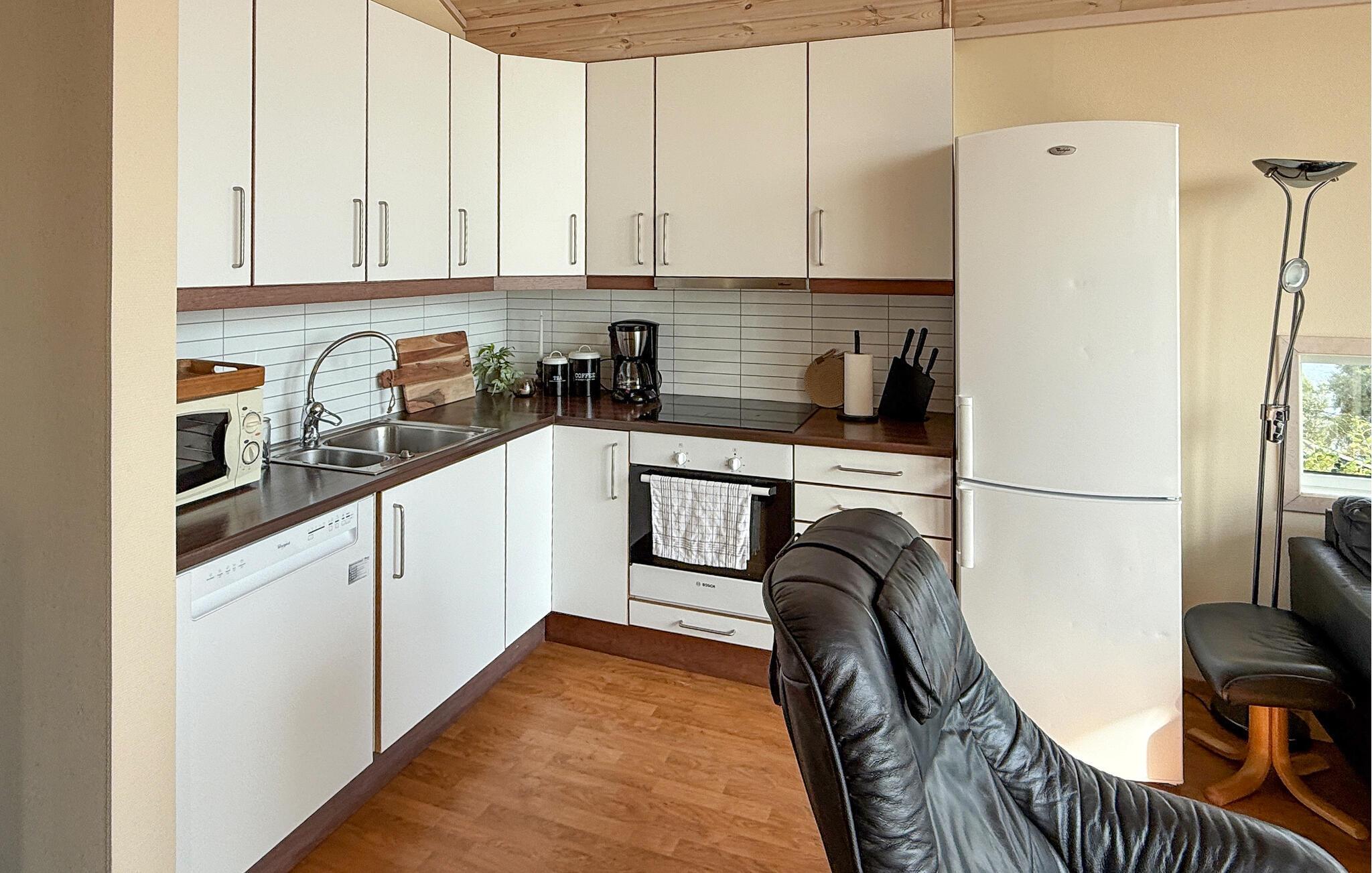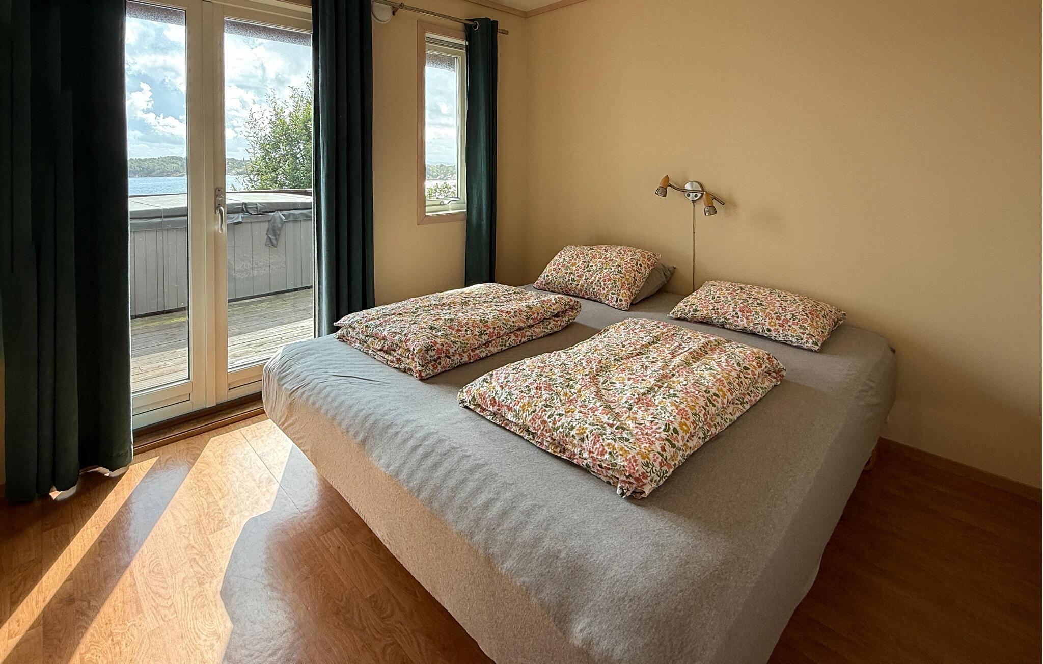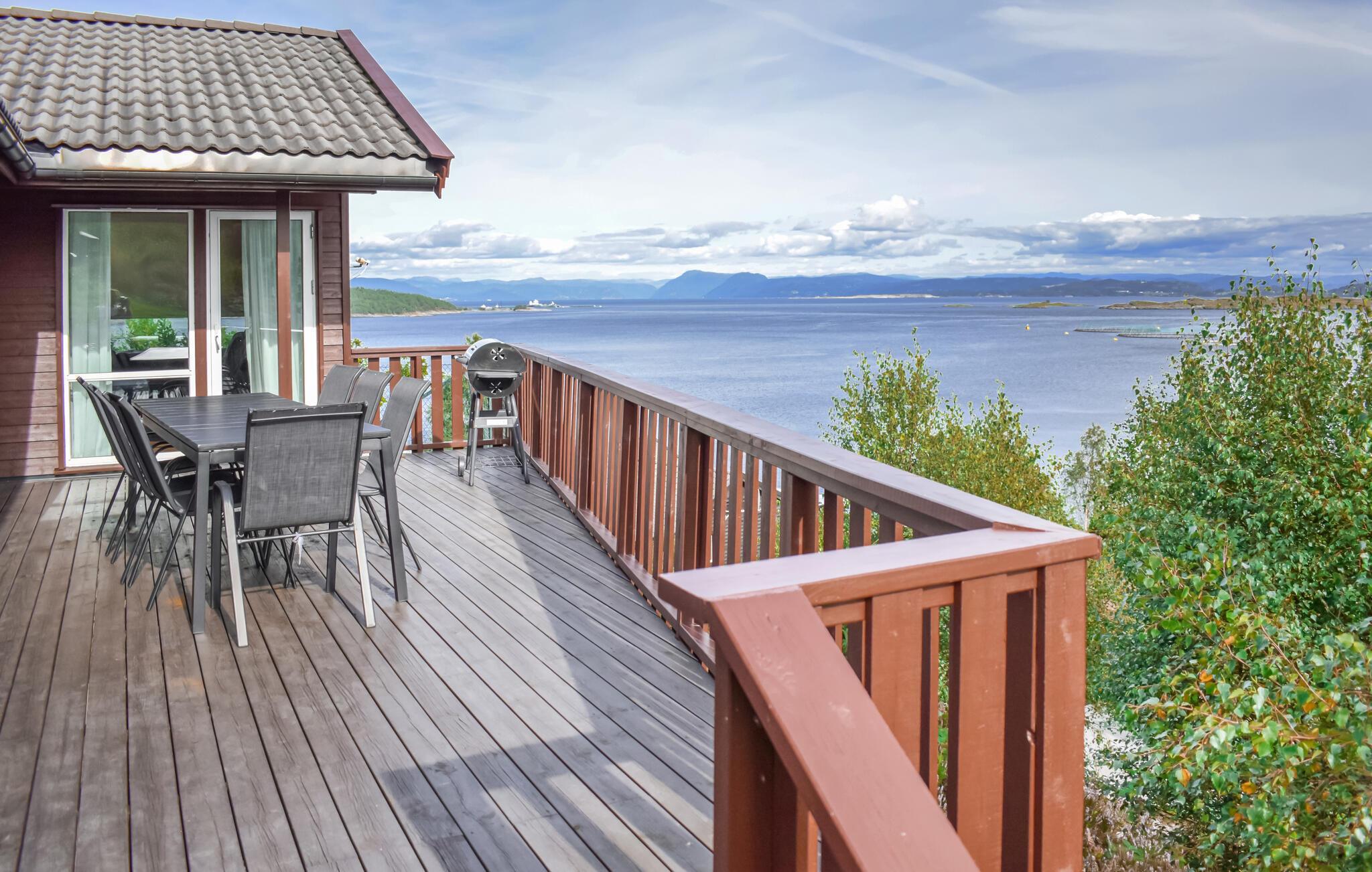 Treten Sie schon morgens ins Freie, genießen Sie den herrlichen Blick auf den weiten Skjoldafjord und springen Sie für eine Erfrischung in den Whirlpool. Ein kurzer Weg führt Sie hinunter zum Bootssteg, von dem Sie zu einer Angel- oder Entdeckungstour durch die stille Fjordlandschaft aufbrechen können. Kinder können sich nach Herzenslust auf dem Trampolin und beim Schaukeln vergnügen.