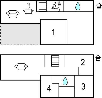 Badezimmer (nr. 1) - WC. Warmes und kaltes Wasser. Dusche