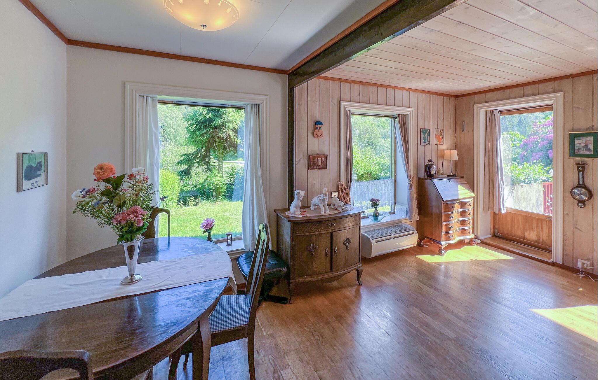 Willkommen in dieser hellen und liebevoll eingerichteten Erdgeschosswohnung, die Sie am idyllischen Seeufer mit einer gemütlichen Wohnatmosphäre begrüßt. Fühlen Sie sich hier mit Ihren Liebsten wie zu Hause, während Sie nach einem aktiven Tag leckere Gerichte in der charmanten Küche zubereiten. Nehmen Sie am Esstisch mit Blick ins Grüne Platz und lassen Sie bei einem Spieleabend auf dem großzügigen Sofa den Kaminofen für zusätzliche Behaglichkeit sorgen. Das Haus liegt ruhig und allein, der nächste Nachbar ist 150 Meter entfernt.