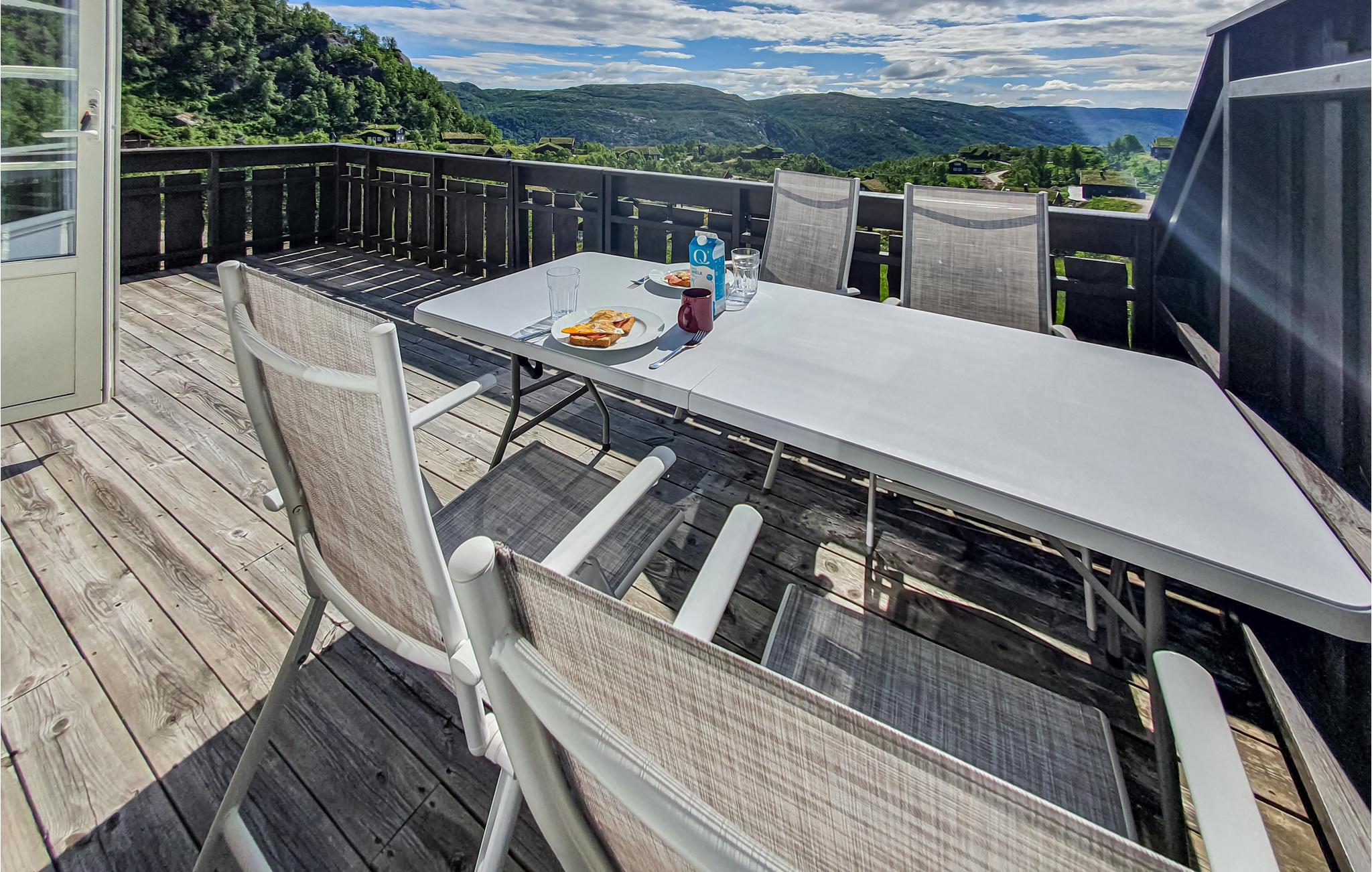An schönen Tagen können Sie die Terrassentür öffnen und Mahlzeiten draußen genießen. Von der Terrasse aus haben Sie eine fantastische Aussicht auf die wunderbare Umgebung.