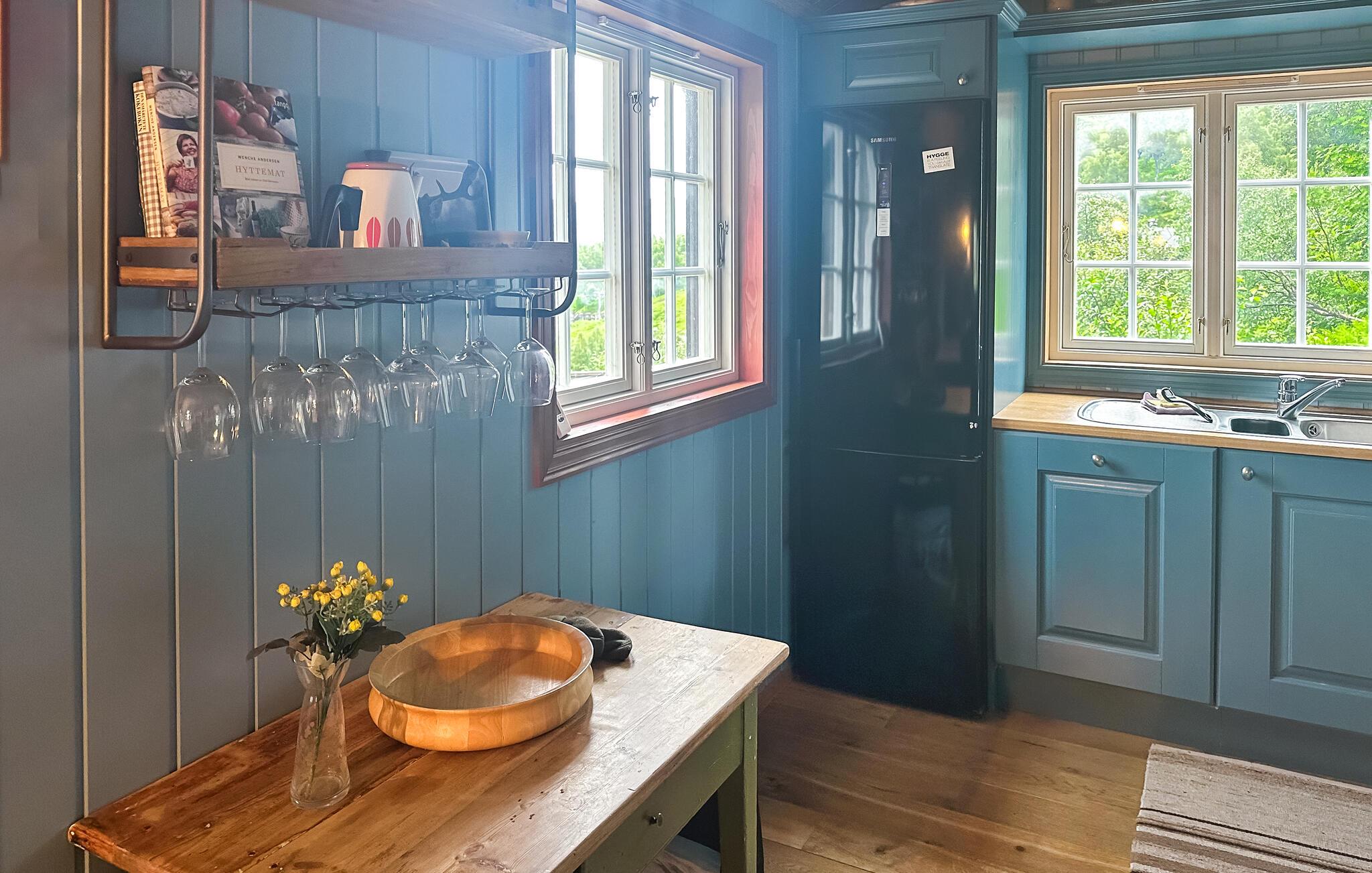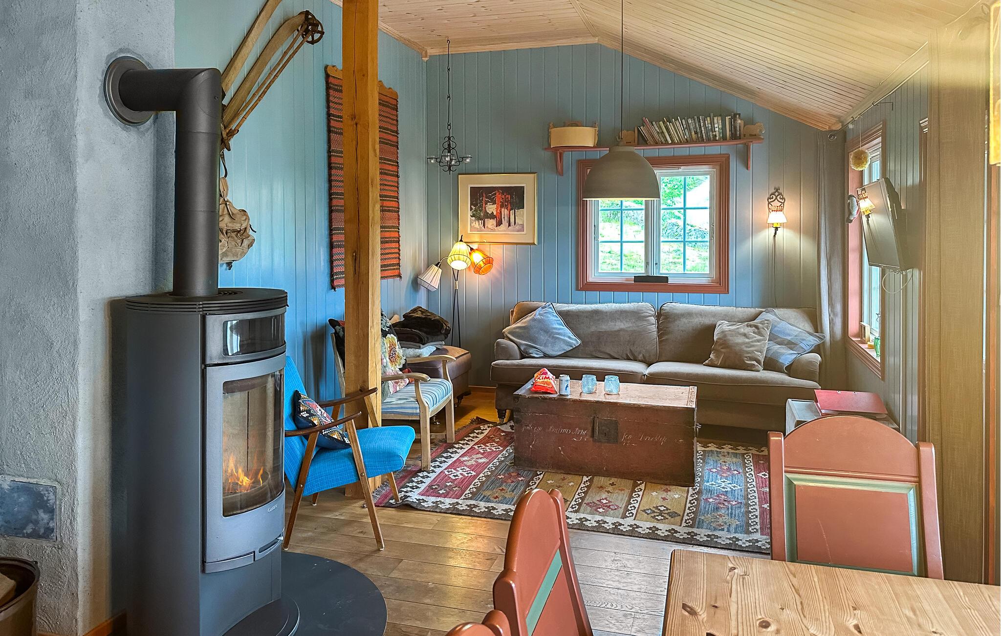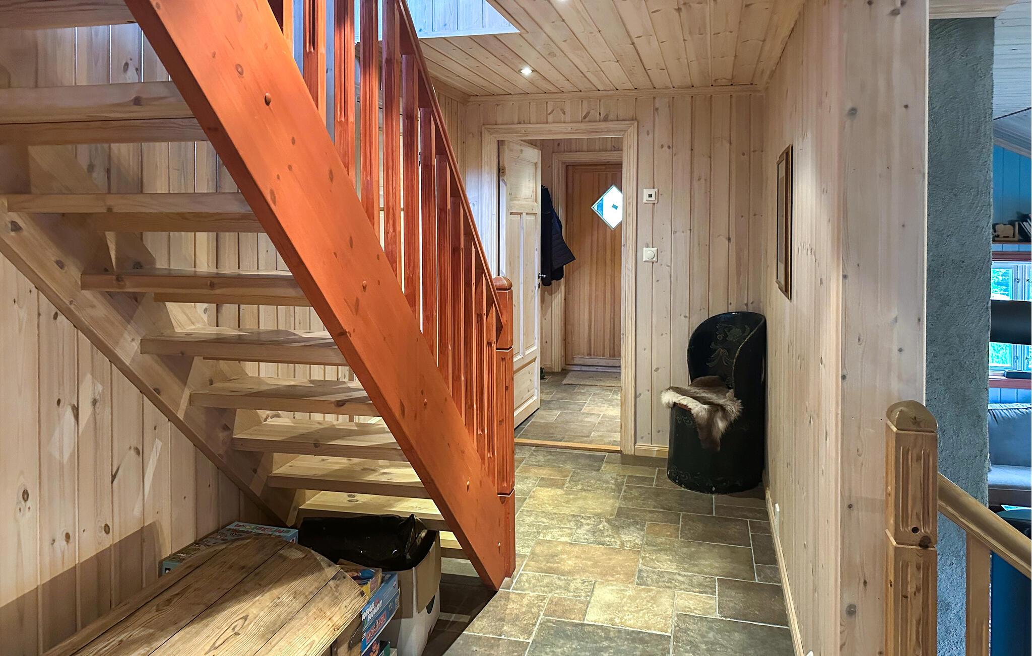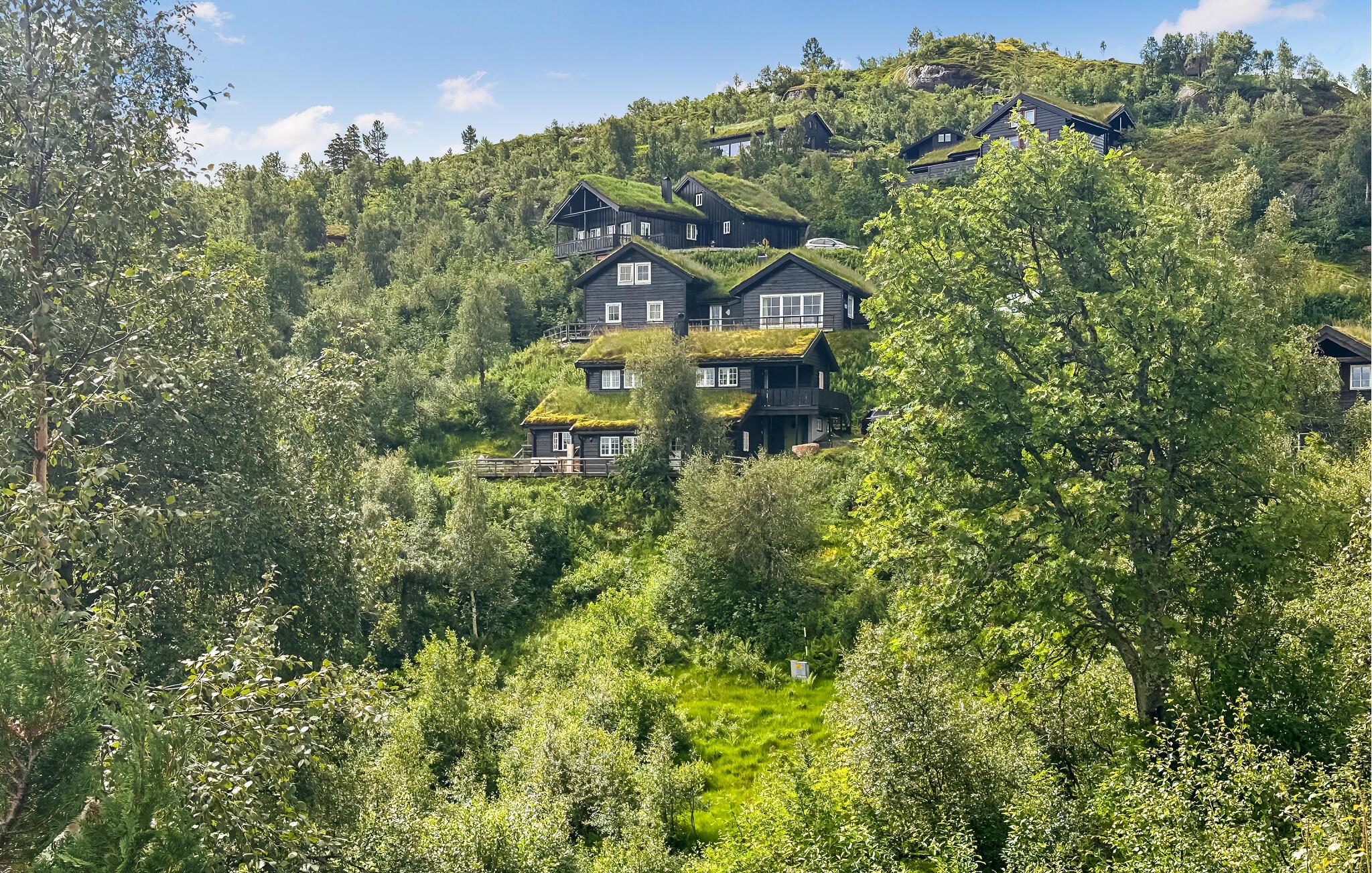 Ihr Ferienhaus in Ljosland erstreckt sich über mehrere Ebenen und bietet Ihnen Komfort auf höchstem Niveau. Das Haus mit dem grünen Naturdach ist ein echter Hingucker und fügt sich nahtlos in das umliegende Naturgebiet ein. Entspannen Sie auf der großen Terrasse und genießen Sie den spektakulären Blick über das Tal und im Winter auf die Skipiste. Starten Sie den Tag mit einem Frühstück auf der Terrasse oder im gemütlichen Wohnzimmer, das mit einem Kamin ausgestattet ist. Ihr Haus verfügt über zwei stilvoll eingerichtete Wohnzimmer, ideal für gemütliche Abende am Kamin.