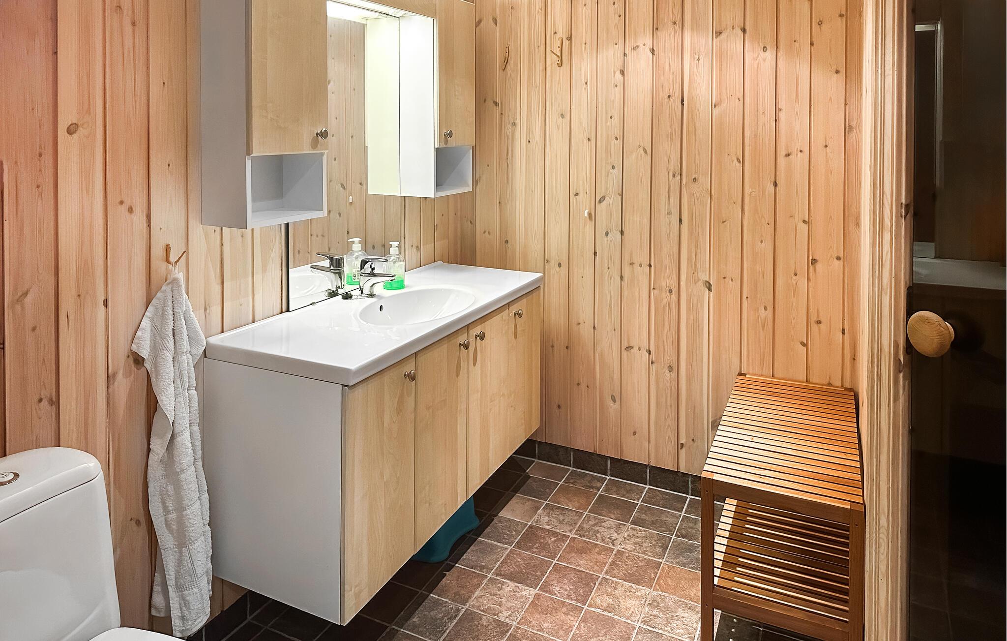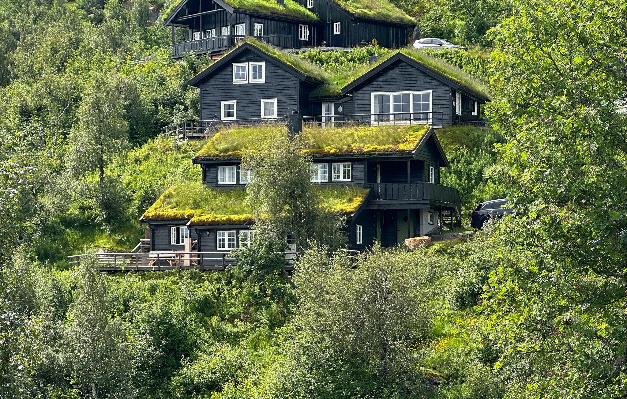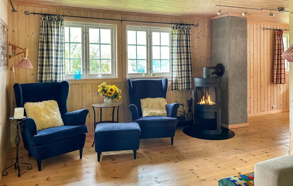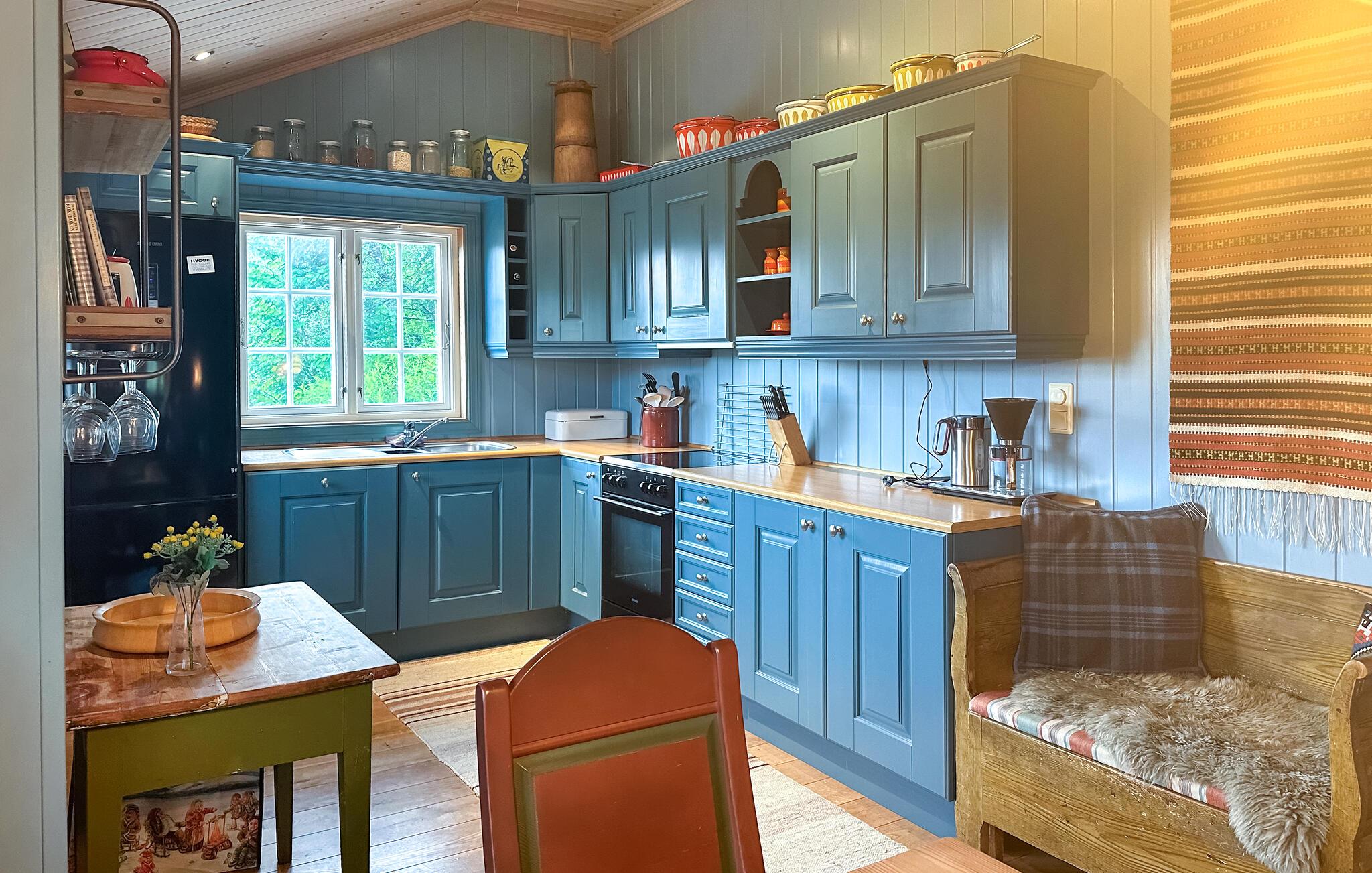 Ihr Ferienhaus in Ljosland erstreckt sich über mehrere Ebenen und bietet Ihnen Komfort auf höchstem Niveau. Das Haus mit dem grünen Naturdach ist ein echter Hingucker und fügt sich nahtlos in das umliegende Naturgebiet ein. Entspannen Sie auf der großen Terrasse und genießen Sie den spektakulären Blick über das Tal und im Winter auf die Skipiste. Starten Sie den Tag mit einem Frühstück auf der Terrasse oder im gemütlichen Wohnzimmer, das mit einem Kamin ausgestattet ist. Ihr Haus verfügt über zwei stilvoll eingerichtete Wohnzimmer, ideal für gemütliche Abende am Kamin.