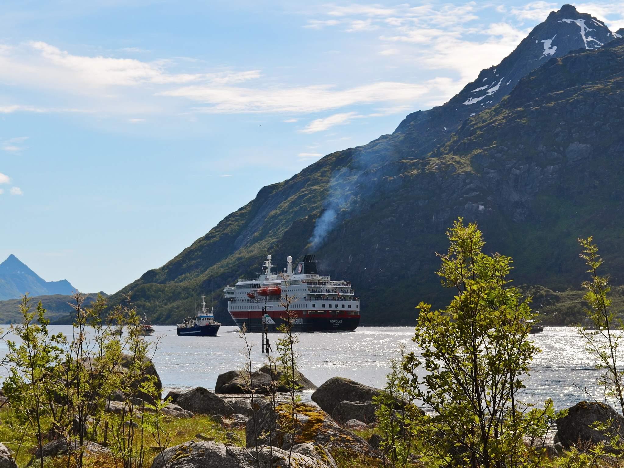 Etwa 80 km nach Svolvær, der sogenannten Hauptstadt der Lofoten. Zahlreiche kleine, idyllische Fischerdörfer entlang der Küste sind zudem einen Abstecher wert. Weiter nördlich liegt Vesterålen. Vom Fischerdorf Andenes werden Wal-Safari auf dem Meer angeboten - ein unvergessliches Erlebnis!