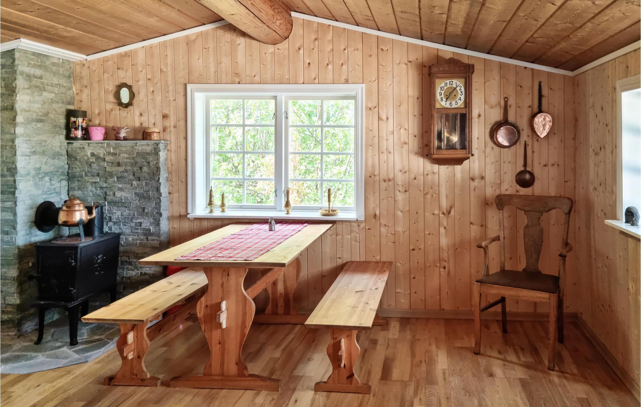 Im bewaldeten Gebiet nahe dem See Homsvatnet begrüßt Sie dieses einfache und praktische Holzhaus. Es wird mit Gas und Solarzellen mit Energie versorgt für Beleuchtung, Kochen oder zum Aufladen des Handys. Nutzen Sie das Haus als gemütliche Basis für eine schöne Auszeit mit Erkundungen der Umgebung und Erlebnissen in der Natur. Machen Sie es sich nach einem aktiven Tag am Kaminofen bequem und lauschen Sie dem Knistern der Flammen.