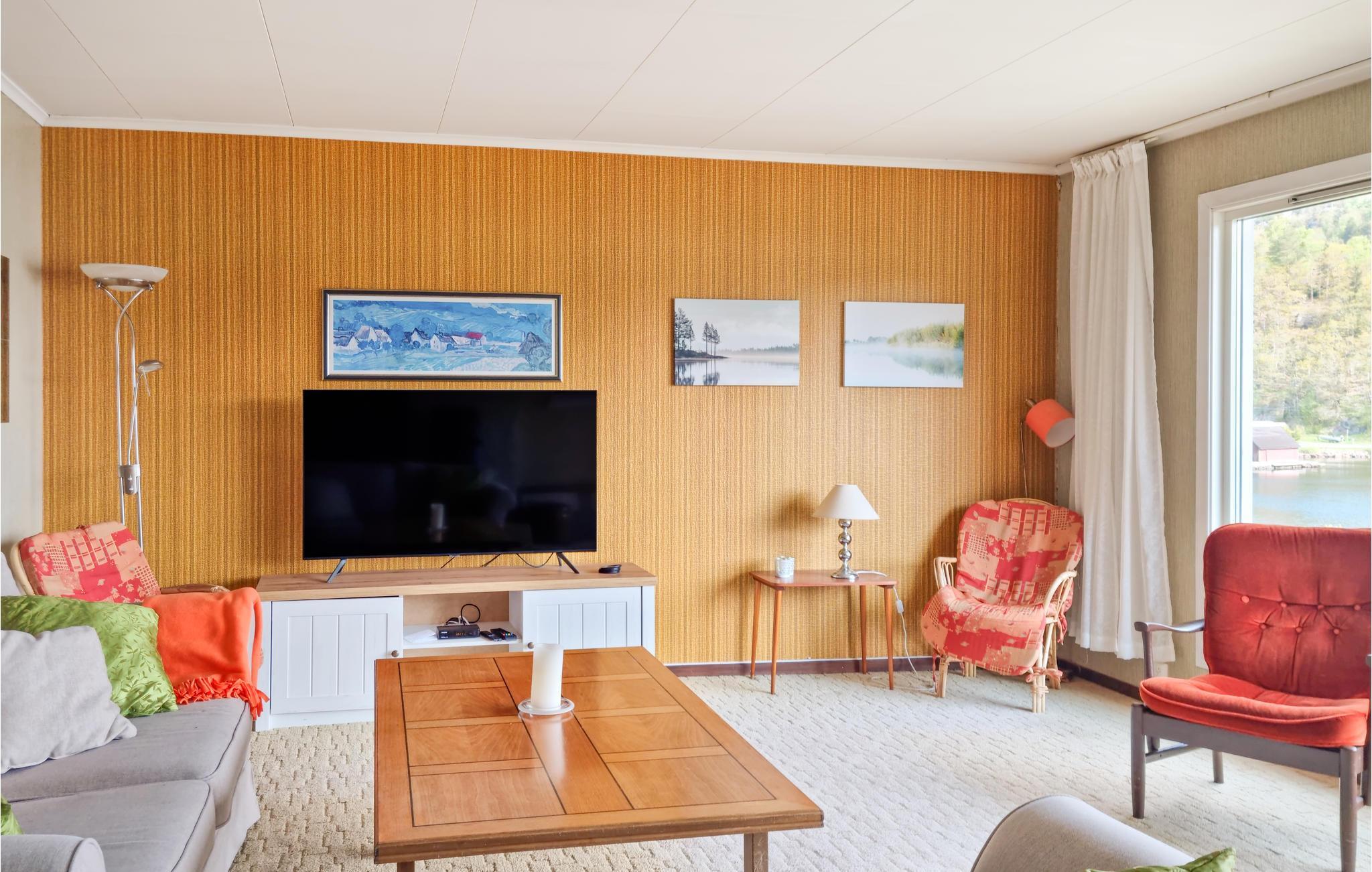 Das gepflegte Haus empfängt Sie in attraktiver Lage nahe hervorragenden Angelmöglichkeiten. Machen Sie es sich in den einladenden und hellen Räumen, die mit Retro-Tapeten und einer wohnlichen Einrichtung überzeugen, mit Ihren Lieben gemütlich. Beim Entspannen auf dem bequemen Sofa genießen Sie einen fantastischen Panoramablick auf den Fjord. Die Urlaubsentspannung stellt sich fast von selbst ein, während Sie den Blick über das Wasser schweifen lassen.