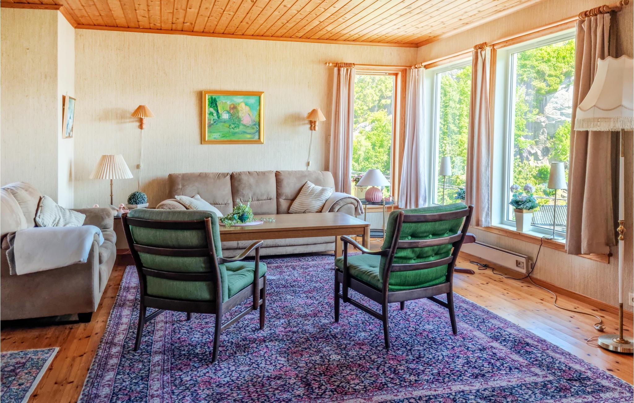 Hier können Sie mal richtig frische Fjordluft schnuppern! Dieses Ferienhaus, das im gemütlichen Dorf Svenevik und in Gehweite zum Fjord liegt, heißt Sie herzlich willkommen. Das einladende Ferienhaus ist im gemütlichen, alten Stil gehalten und bietet Ihnen einen herrlichen Blick auf den Fjord. Die warmen Farben schaffen eine angenehme Atmosphäre. Unterhalten Sie sich bei einem Kaffee in einem der drei Sofabereiche und kochen Sie gemeinsam in der Küche. Durch die großen Fenster können Sie die Natur hautnah erleben. Ihre Mahlzeiten können Sie auch auf der offenen Terrasse genießen. Zu Fuß erreichen Sie schnell den Fjord und einen markierten Wanderweg. Gehen Sie angeln oder schwimmen Sie im frischen Fjordwasser.
