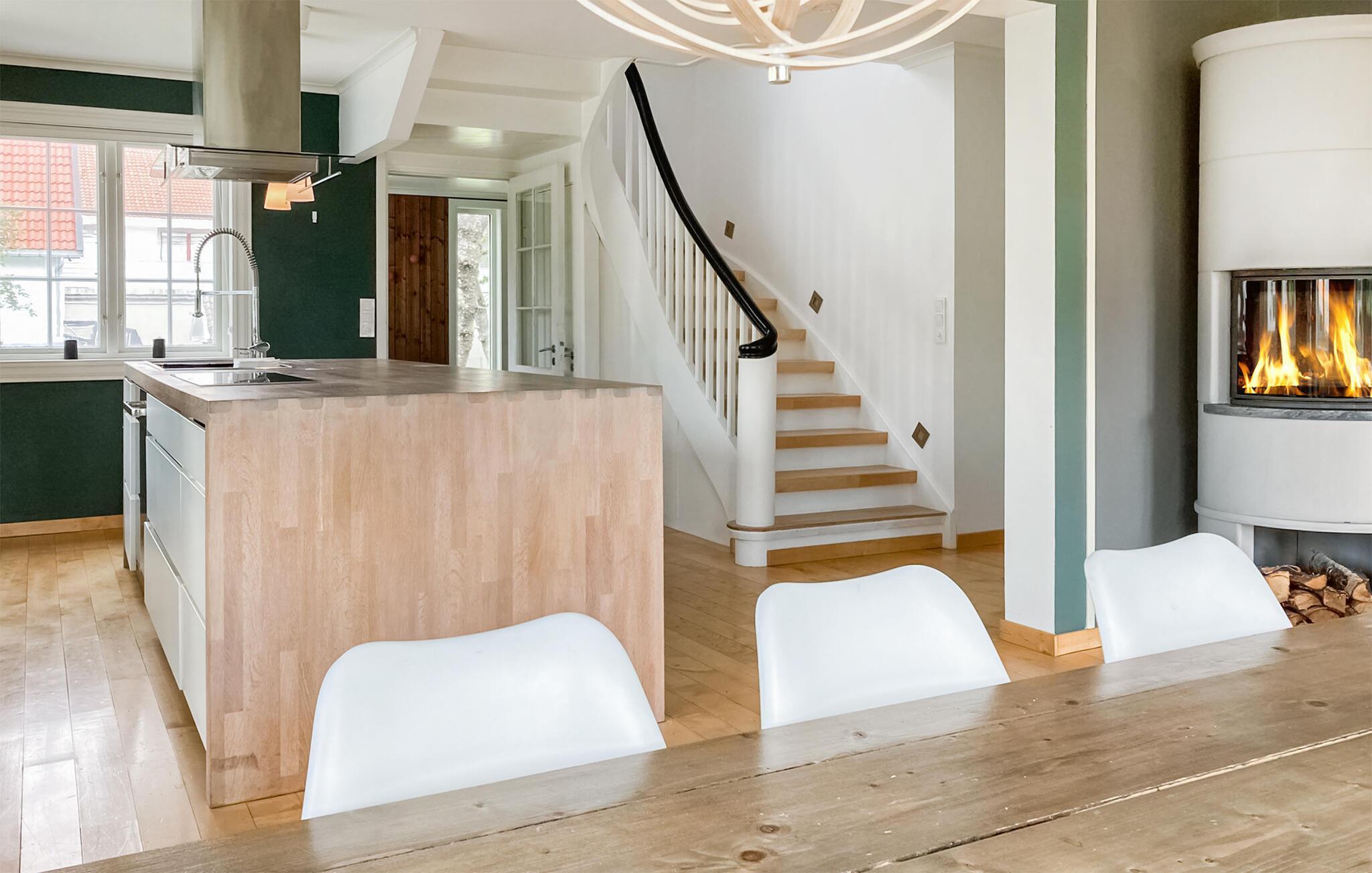 Willkommen in diesem komfortablen Haus, das Sie in einer ruhigen Villengegend empfängt und in dem Sie sich ganzjährig auf fantastische Erlebnisse in der Natur freuen können. Die geschmackvolle Einrichtung und dezente Farben machen es zum idealen Ort für eine erholsame Auszeit vom Alltag. Der lange Esstisch und die gemütliche Sofalandschaft laden zu geselligen Abenden nach erlebnisreichen Tagen ein. Plaudern Sie noch lange und lauschen Sie dem Knistern der Flammen im Kaminofen.