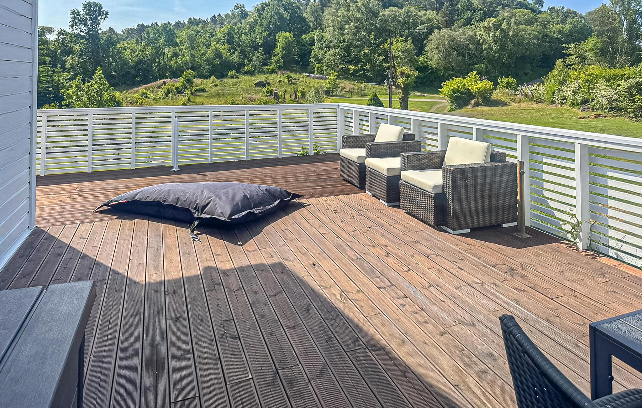 Von der Terrasse des landschaftlich schön gelegenen Hauses haben Sie einen fantastischen Blick in die Umgebung. Lauschen Sie der Natur oder kommen Sie bei gemeinsamen Mahlzeiten, die Sie auf dem Grill im Garten zubereiten, zusammen. Lassen Sie den Tag entspannt bei guten Gesprächen und einem Glas Wein ausklingen.