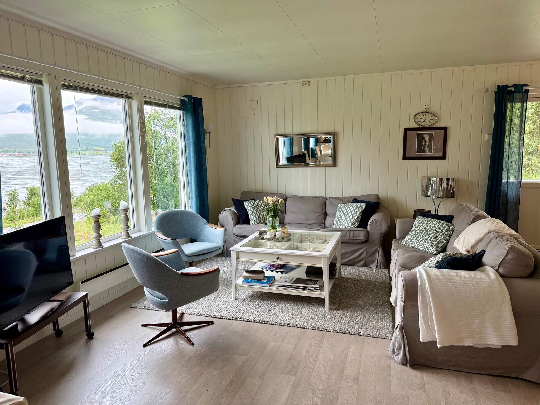 Das Ferienhaus steht nur 60 m vom Fjord und bietet herrlichen Ausblick zur Küstenlandschaft von sowohl der Küche, dem Wohnzimmer als auch der Terrasse aus! Ein großartiger Aussichtsort für Wintererlebnisse mit Nordlichtern, die in klaren Nächten bunt am Himmel tanzen. Im Sommer ist dafür die Mitternachtssonne ein reizvoller Anblick.