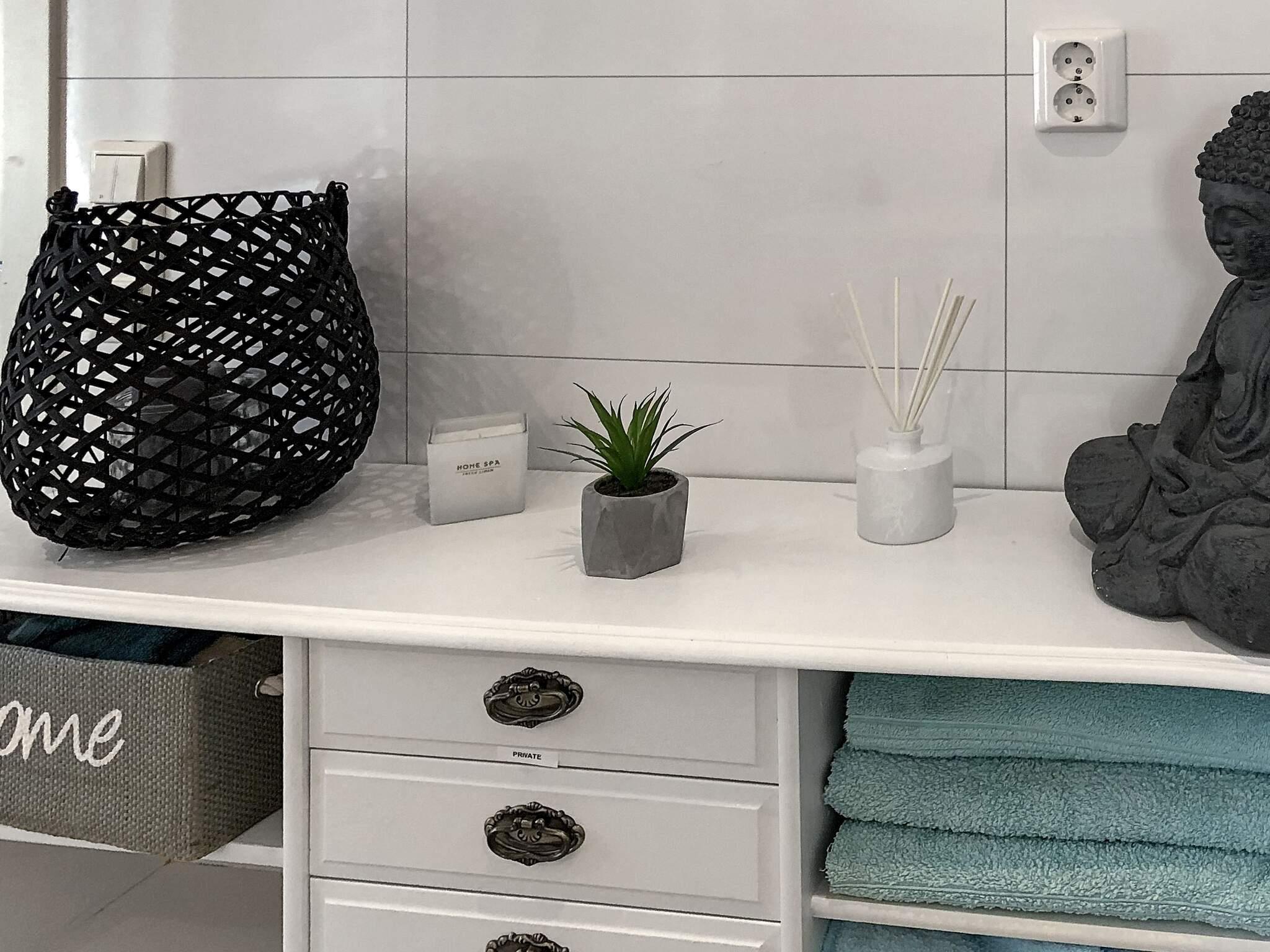 Das traditionelle, geräumige Holzhaus wurde zuletzt 2017 ansprechend renoviert und ist gut ausgestattet. Zur Verfügung stehen im Parterre ein Küchen-/Wohnbereich für das Familienleben sowie ein Schlafzimmer. In der oberen Etage befinden sich vier weitere Schlafzimmer; drei Schlafzimmer sind mit jeweils einem Doppelbett eingerichtet, das vierte mit zwei Einzelbetten. Das schmalste Doppelbett ist 120 cm breit. Außerdem Bad mit Dusche/WC und angenehmer Fußbodenheizung sowie kleineres Gäste-WC im Haus. Desweiteren praktische Waschküche inklusive Duschkabine.