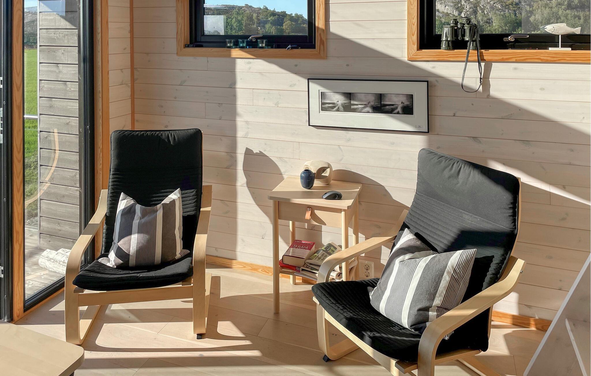 Willkommen in diesem modernen Ferienhaus auf Lysøya, wo Sie das Gefühl von Freiheit und Naturverbundenheit hautnah erleben. Diese kompakte Unterkunft ist perfekt gestaltet, um Ihnen den nötigen Komfort zu bieten, während das Meer und die atemberaubende Landschaft direkt vor der Tür liegen. Große Fenster lassen Tageslicht herein und bieten einen spektakulären Blick auf die Umgebung. Die geschmackvolle Einrichtung sorgt für eine gemütliche Atmosphäre, in der Sie nach einem Tag voller Abenteuer entspannen können. Hier können Sie die Natur genießen, sei es beim Frühstück auf der Terrasse oder beim Ausklang am Abend mit Blick auf den Sonnenuntergang über dem Wasser.