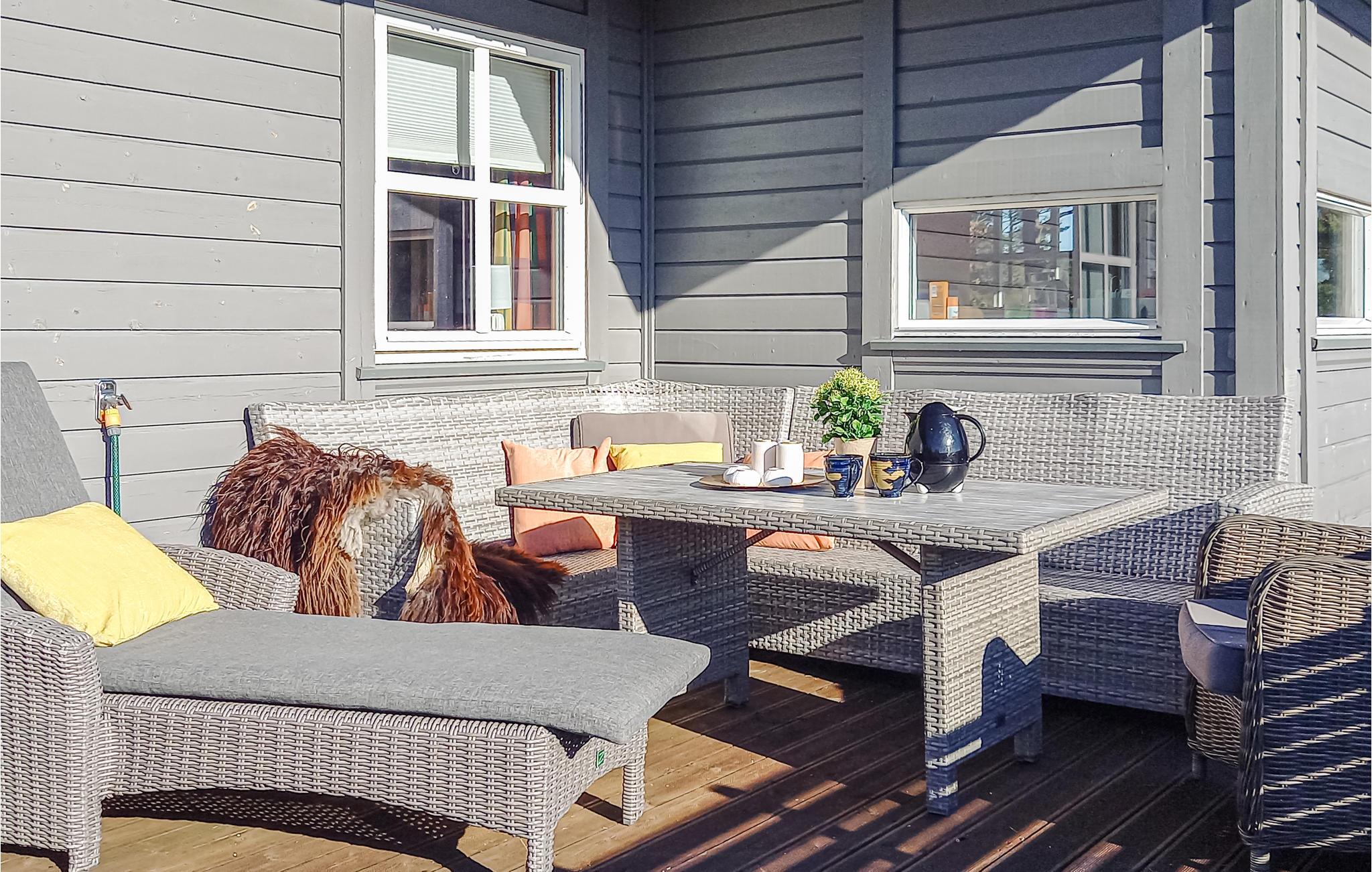 Die Außenbereiche des Ferienhauses können sich ebenfalls sehen lassen. Die gut ausgestattete Terrasse lädt dazu ein, herrliche Stunden im Freien zu verbringen. Auf dem sichtgeschützten Grundstück genießen Sie viel Privatsphäre.
