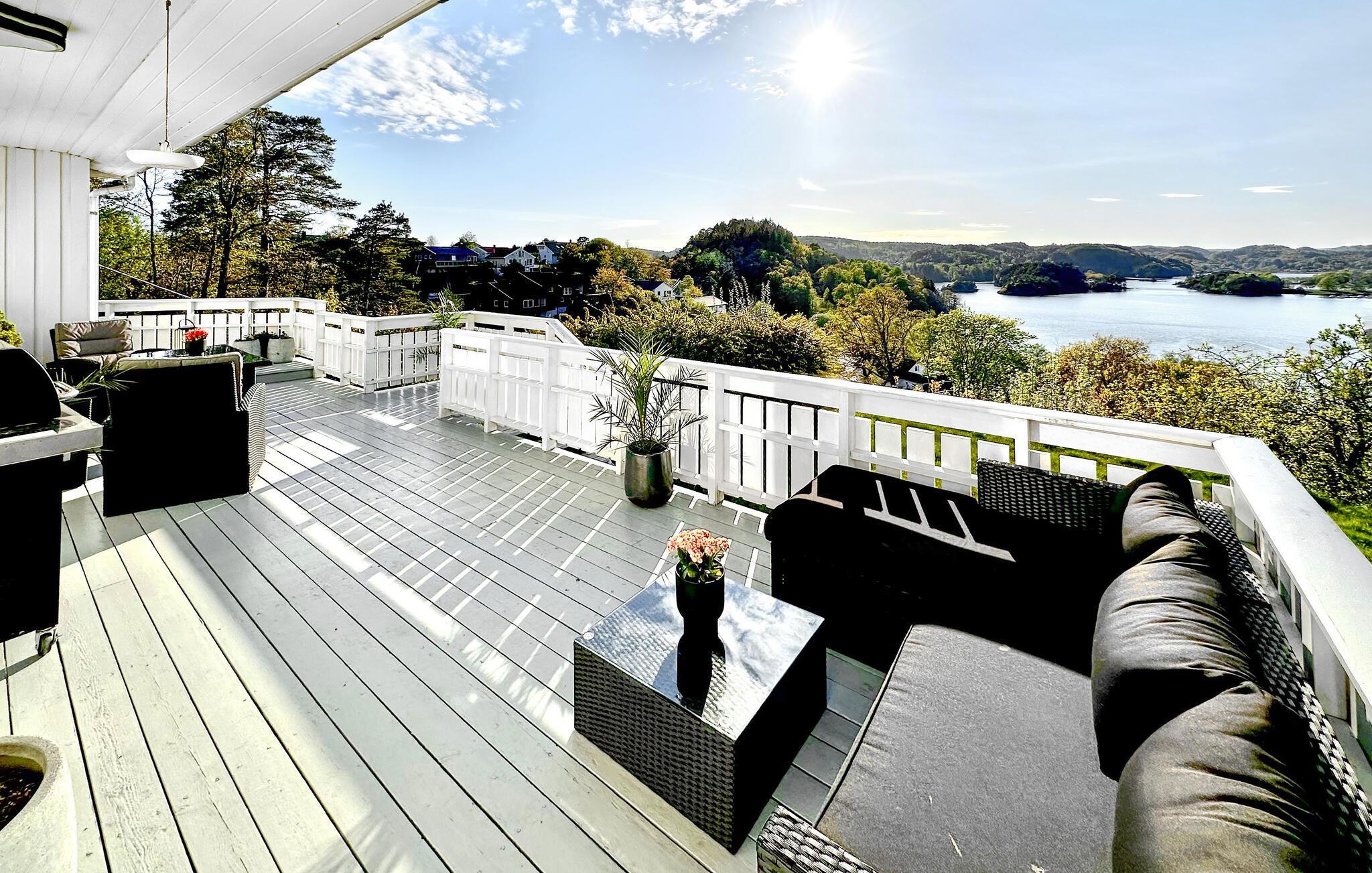 Nutzen Sie die große Terrasse mit ihren bequemen Sitzgruppen für entspannte Stunden im Freien und genießen Sie den Panoramablick auf die umliegende Küstenlandschaft. Frühstücken Sie unter freiem Himmel oder bereiten Sie ein Abendessen auf dem Grill zu.