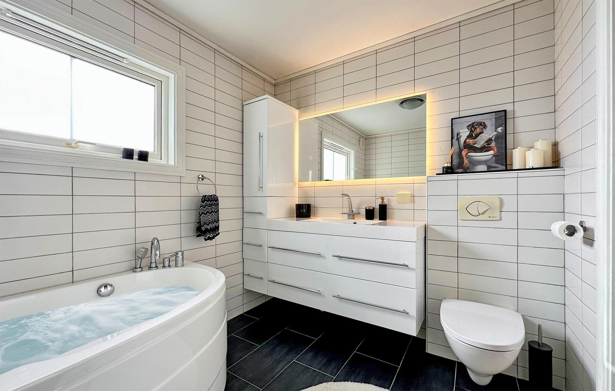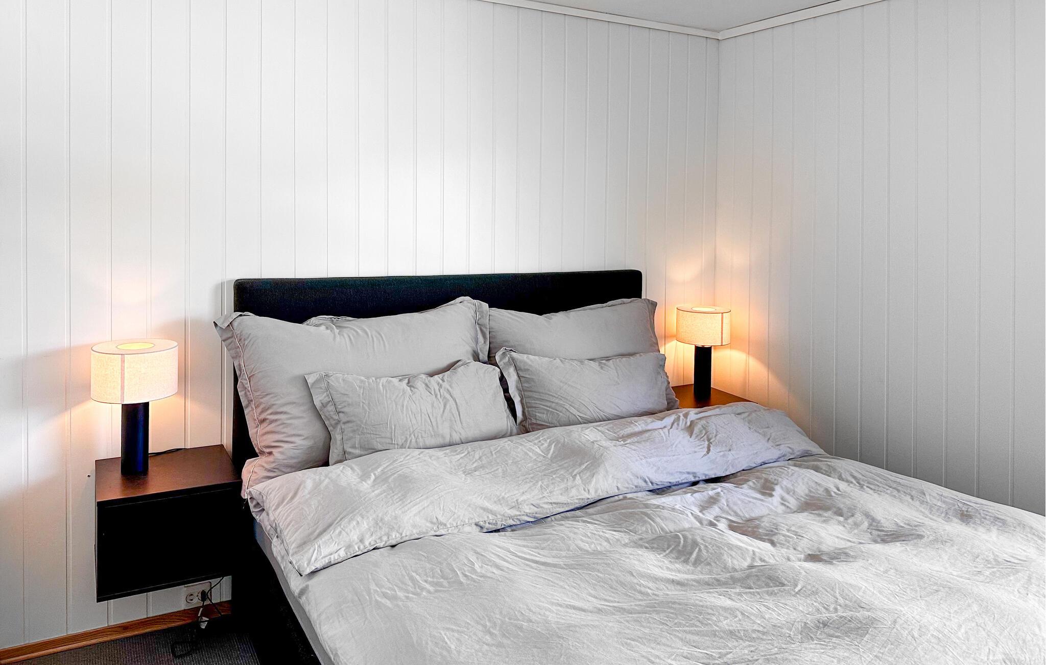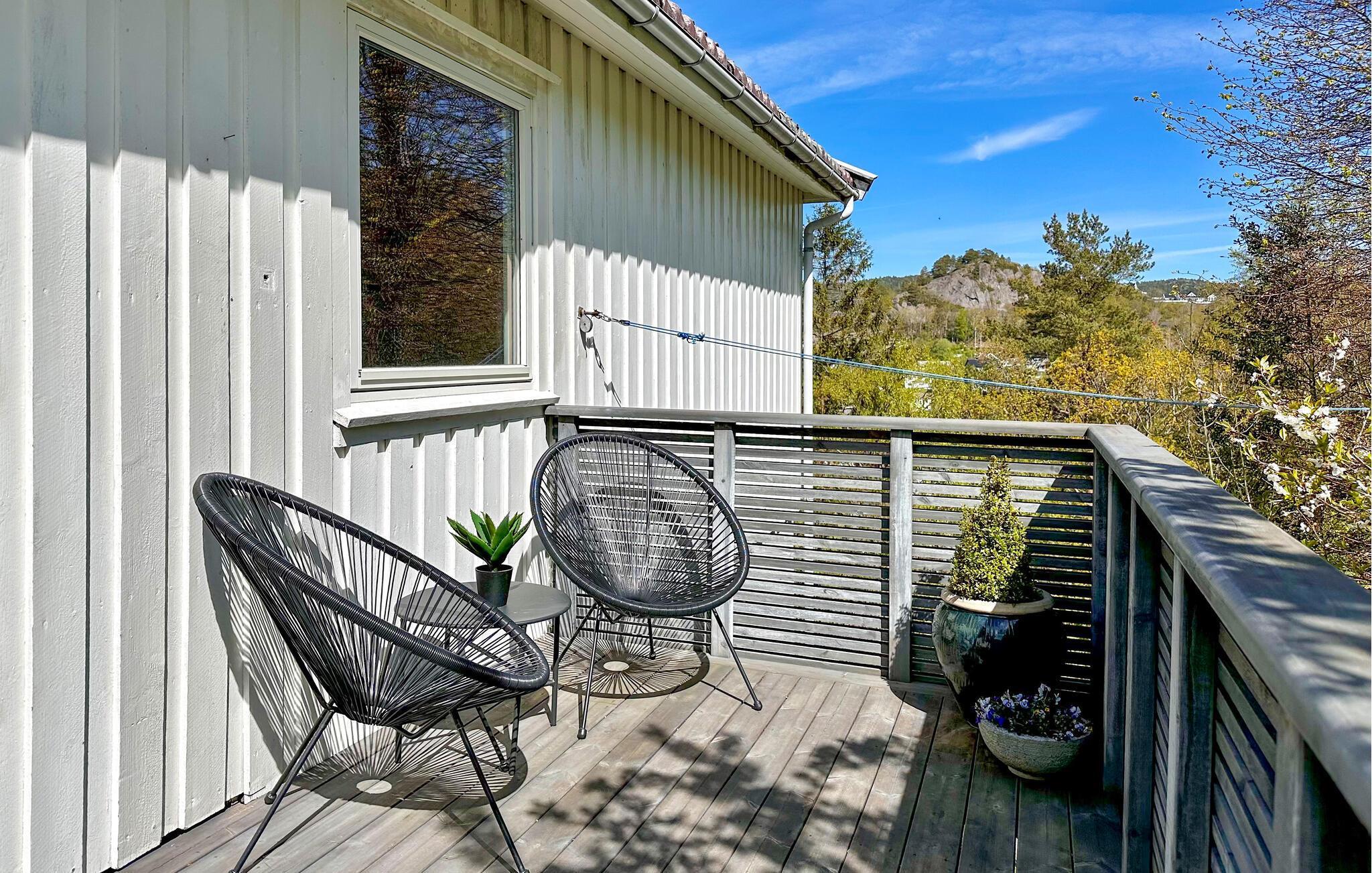 Verbringen Sie erholsame Urlaubstage in diesem stilvoll eingerichteten Ferienhaus, das mit seiner großzügigen Ausstattung und der herrlichen Aussicht zum Verweilen einlädt. Das Haus bietet einen idealen Ausgangspunkt für Erholung und Ausflüge entlang der Südküste Norwegens. Machen Sie es sich im lichtdurchfluteten Wohnzimmer auf dem großen Sofa gemütlich oder genießen Sie die geselligen Mahlzeiten im geschmackvollen Essbereich. Der moderne Einrichtungsstil mit großen Fenstern und edlen Details sorgt für eine warme und zugleich elegante Atmosphäre. Am Abend können Sie den Blick über das Wasser schweifen lassen, während sanftes Licht den Raum erfüllt.