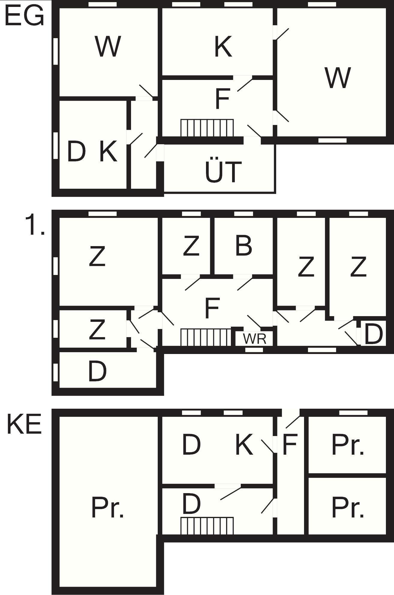 Off. Küche: Hochstuhl, E-Kochpl., Ofen, Kühlschr., Mikrow., Gefriertruhe über 250 l., Abzugsh., Spülm., Waschm., Kaffeem., Waffeleisen
