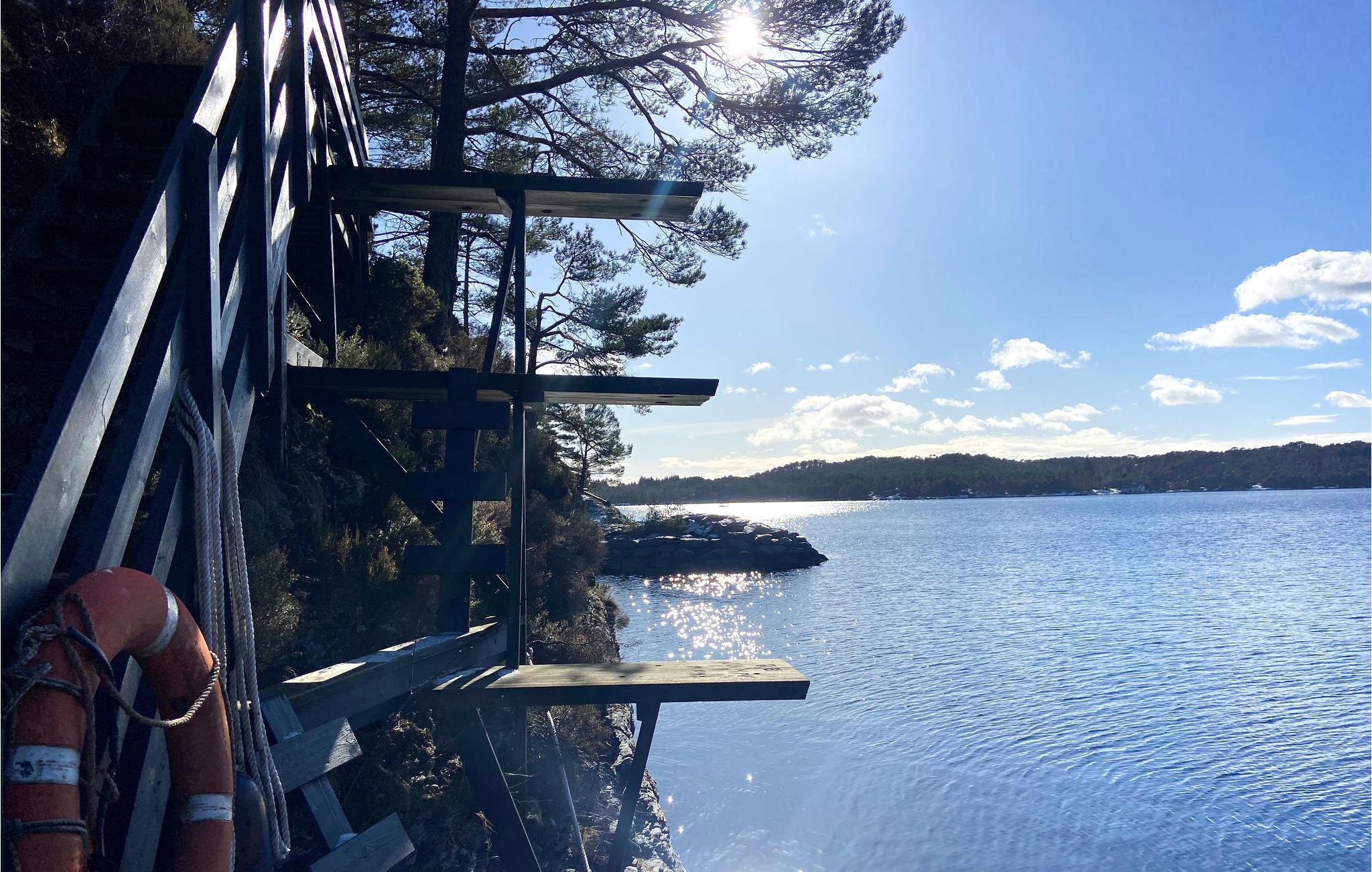 Verbringen Sie einen unvergesslichen Urlaub umgeben von herrlicher Natur mit eigenem Badesteg und Strand in diesem Ferienhaus am Fjord.