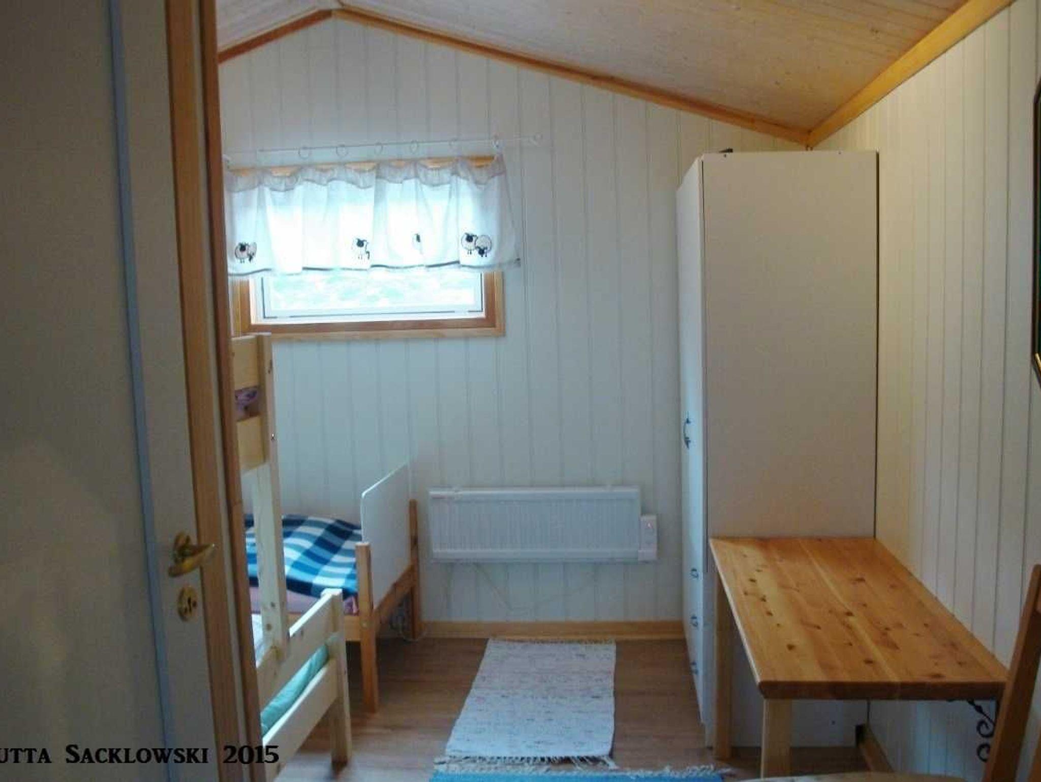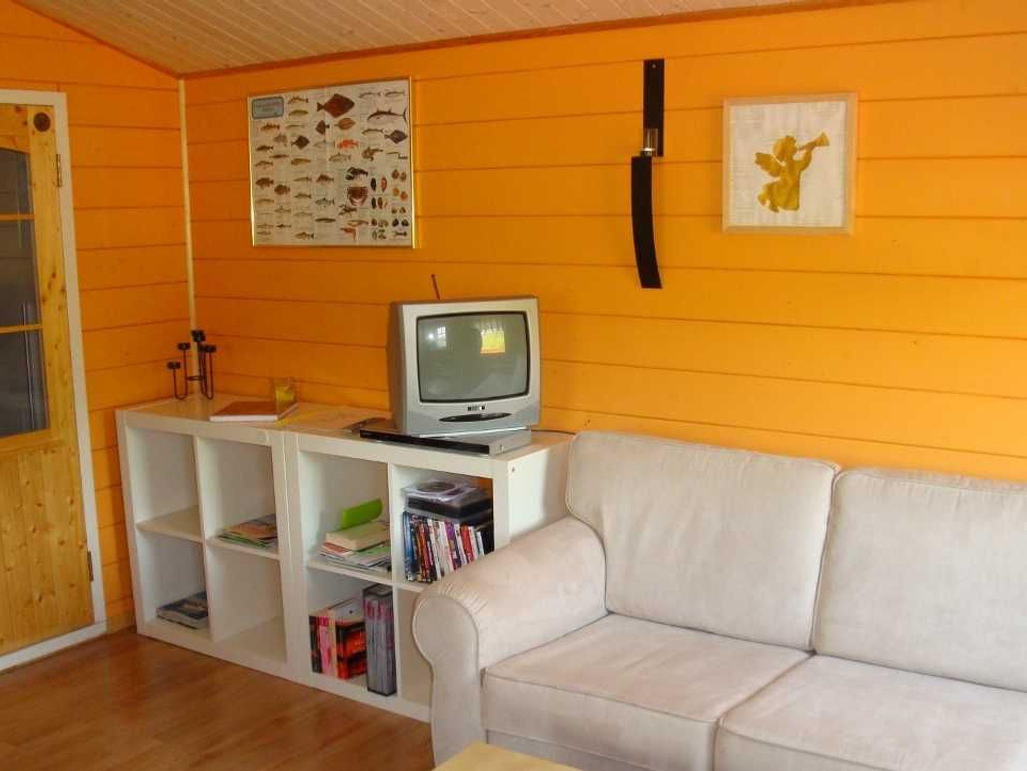 Kleine, gemütliche Ferienhütte (gebaut 2012) von 30 qum mit kleiner Terrasse. Die Hütte hat einen 16 qum großen Wohnraum mit voll ausgestatteter Kochecke (Kühlschrank/Gefrierwürfel), einen Schlafraum von 12qum für 2 Erwachsene (+ 1 Person) mit Familienkoje und 1 Einzelbett, sowie ein kleines Bad mit WC, Waschbecken und Dusche. Wir haben hier keinen Fernsehempfang, aber jede Menge DVD´s und Bücher, sowie einen kostenlosen Internetzugang für Ihr mitgebrachtes Tablet oder Laptop. Nach Absprache mit dem Vermieter kann ein 14 Fuss Boot mit 6 PS-Motor genutzt werden, sofern die Hütte für mindestens 2 Tage gebucht wird.