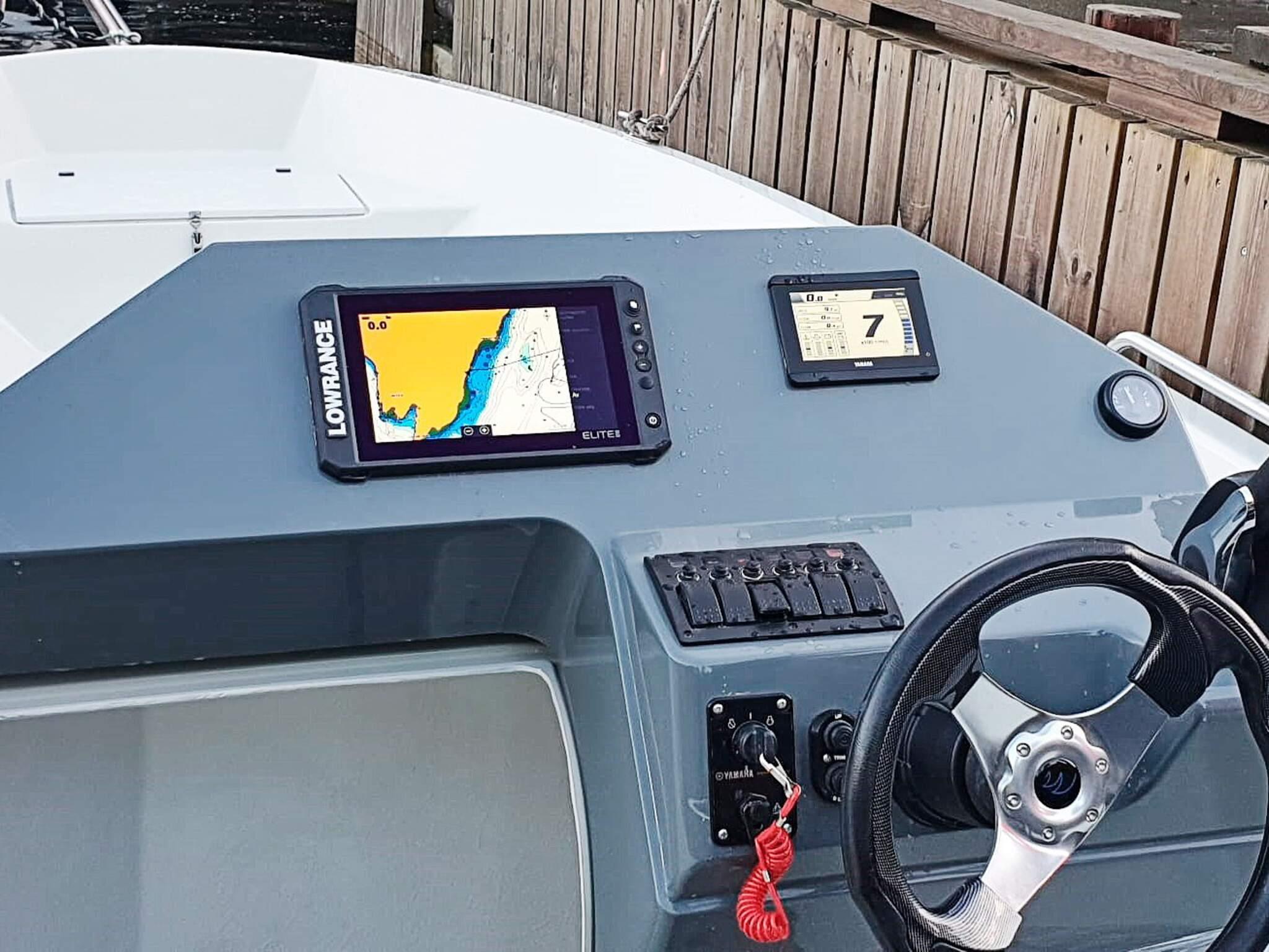 - *ein 22 Fuß Boot (Typ Storm 670) mit 115 PS Yamaha VMAX Motor u. Lawrence 9 Zoll.