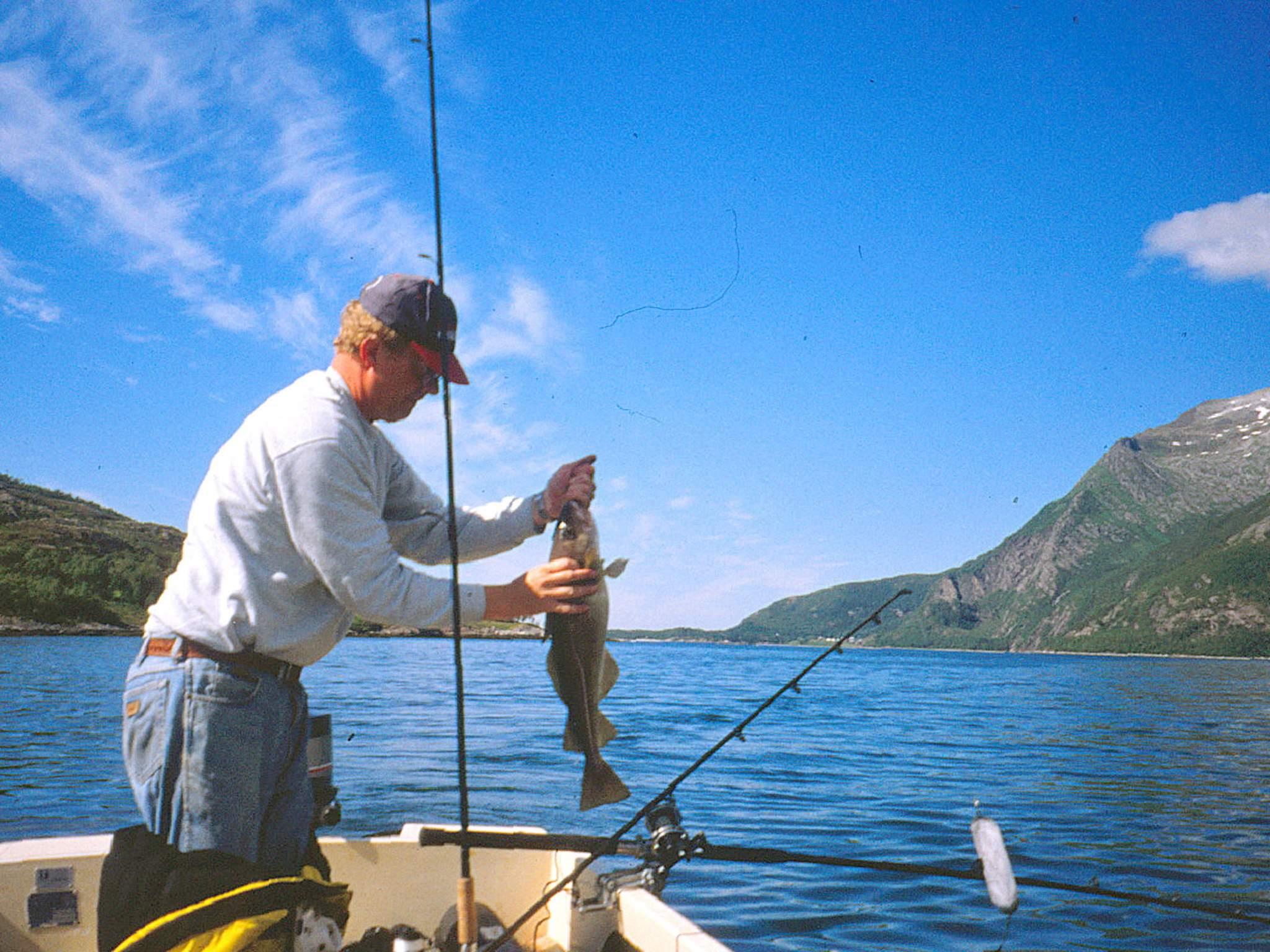 Der Fjord Indre Folda gilt als sehr fischreich. Zusätzlich zu den üblicheren Arten beißen hier auch Lachs und Meerforelle an. Sie können mit der Rute am Ufer direkt vor dem Haus angeln oder das 14 Fuß Boot anmieten und damit längere Angelausflüge unternehmen. Das Boot liegt im Wasser, etwa 50 m vom Haus, bereit (kein Schwimmsteg). Zudem kann am Fluss Oppløelva, etwa 45 km vom Haus, nach Lachs geangelt werden (Angelschein erforderlich).