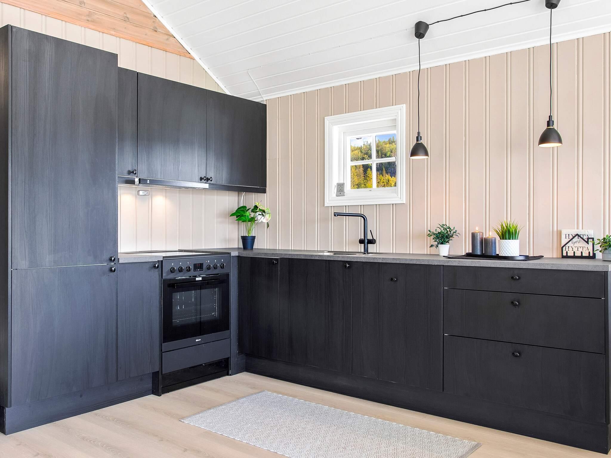 Das 2008 erbaute und 2022 ansprechend modernisierte Ferienhaus bietet 2 Schlafzimmer im Erdgeschoss; eines mit Doppelbett, das andere mit Familien-Etagenbett mit doppelter Liegefläche unten und Einzelkoje darüber. Zwischengeschoss mit Loft-Wohnzimmer mit bequemem Doppelbett und Kinderbett. Im Wohnzimmer gibt es einen Holzofen und Smart-TV mit vielen norwegischen und internationalen Fernsehsendern, darunter auch Deutsche Welle. Freies WLAN mit guter Kapazität. Dazu Netflix. Große Terrasse mit Gartenmöbeln und Feuerpfanne mit Grillrost.
