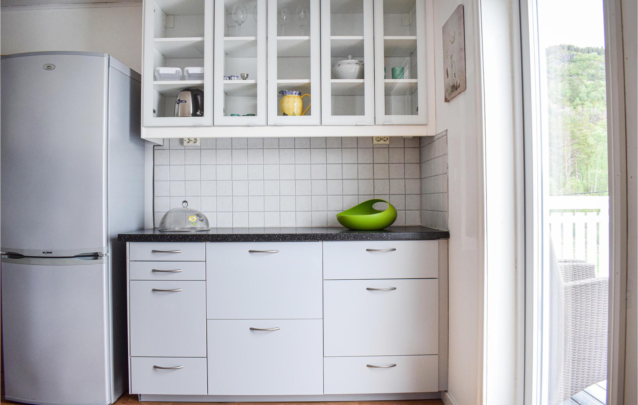 Von der Küche aus haben Sie Zugang zu einer großen Terrasse, von der man den Blick über den Fjord genießen kann. Starten Sie den Tag hier mit einem leckeren Frühstück und planen Sie die Aktivitäten des Tages.