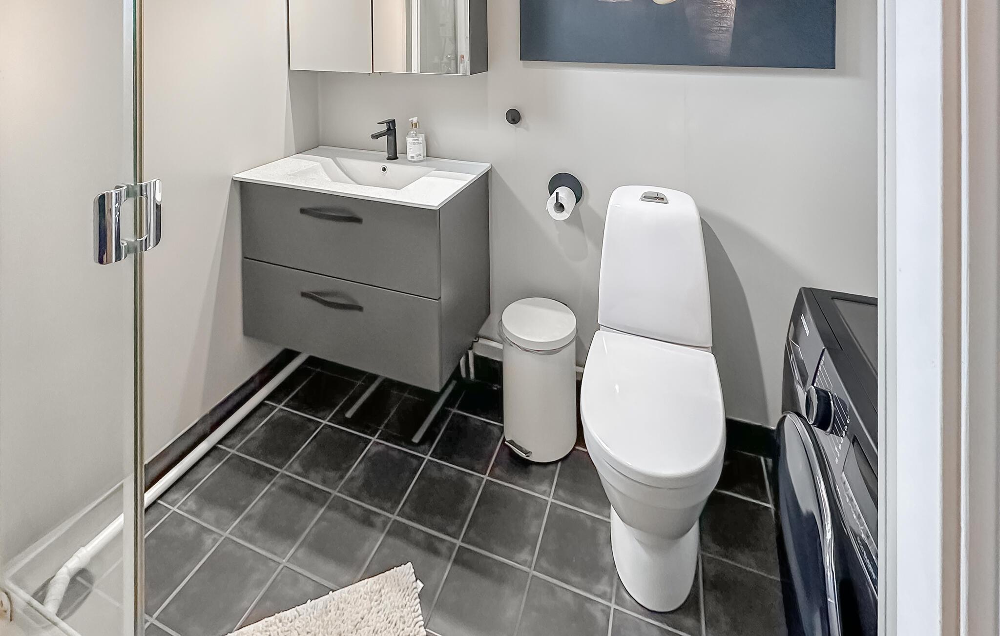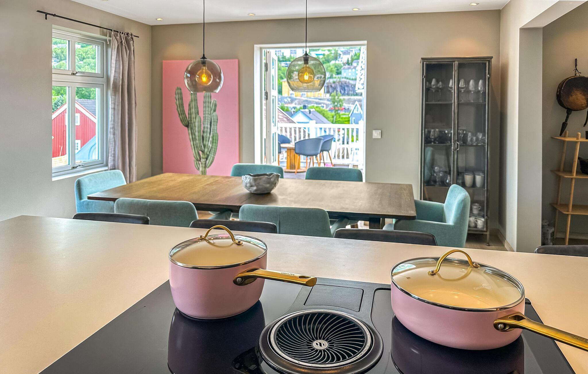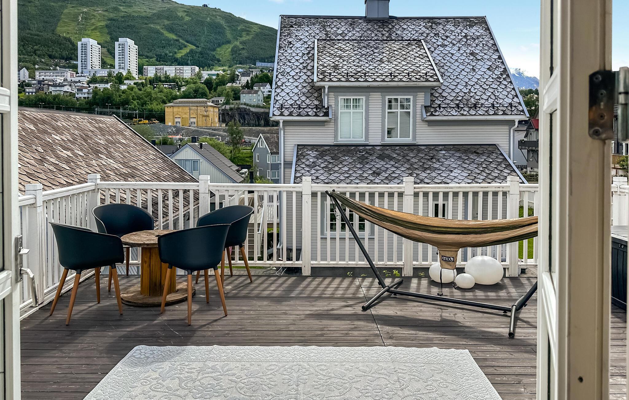 Die große Terrasse lädt dazu ein, die frische Luft zu genießen und bietet einen wunderbaren Blick auf Narvik und die umliegenden Berge. Machen Sie es sich auf den Lounge-Möbeln bequem oder entspannen Sie in der Hängematte. In der Garage befindet sich ein kleiner Fitnessraum, den Sie nutzen können.