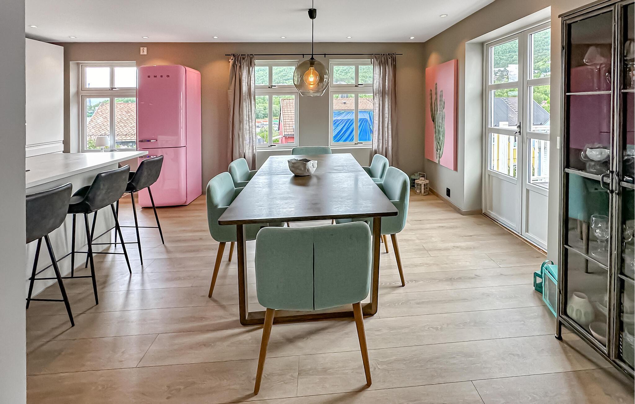 Ihre schöne Wohnung liegt mitten in Narvik und in unmittelbarer Nähe zur Natur. Beginnen Sie Ihren Tag mit einem entspannten Frühstück an der langen Küchentheke. Die vielen interessanten Details verleihen Ihrer Ferienwohnung einen besonderen Akzent und schaffen eine charmante Atmosphäre. Das Wohnzimmer ist ein Ort der Entspannung, wo Sie sich auf den bequemen Sofas zurücklehnen und die stilvolle Einrichtung genießen können. Nach einem Tag voller Erkundungen können Sie hier gemütliche Abende verbringen, sei es beim Lesen, Fernsehen oder einfach beim Genießen der Ruhe.