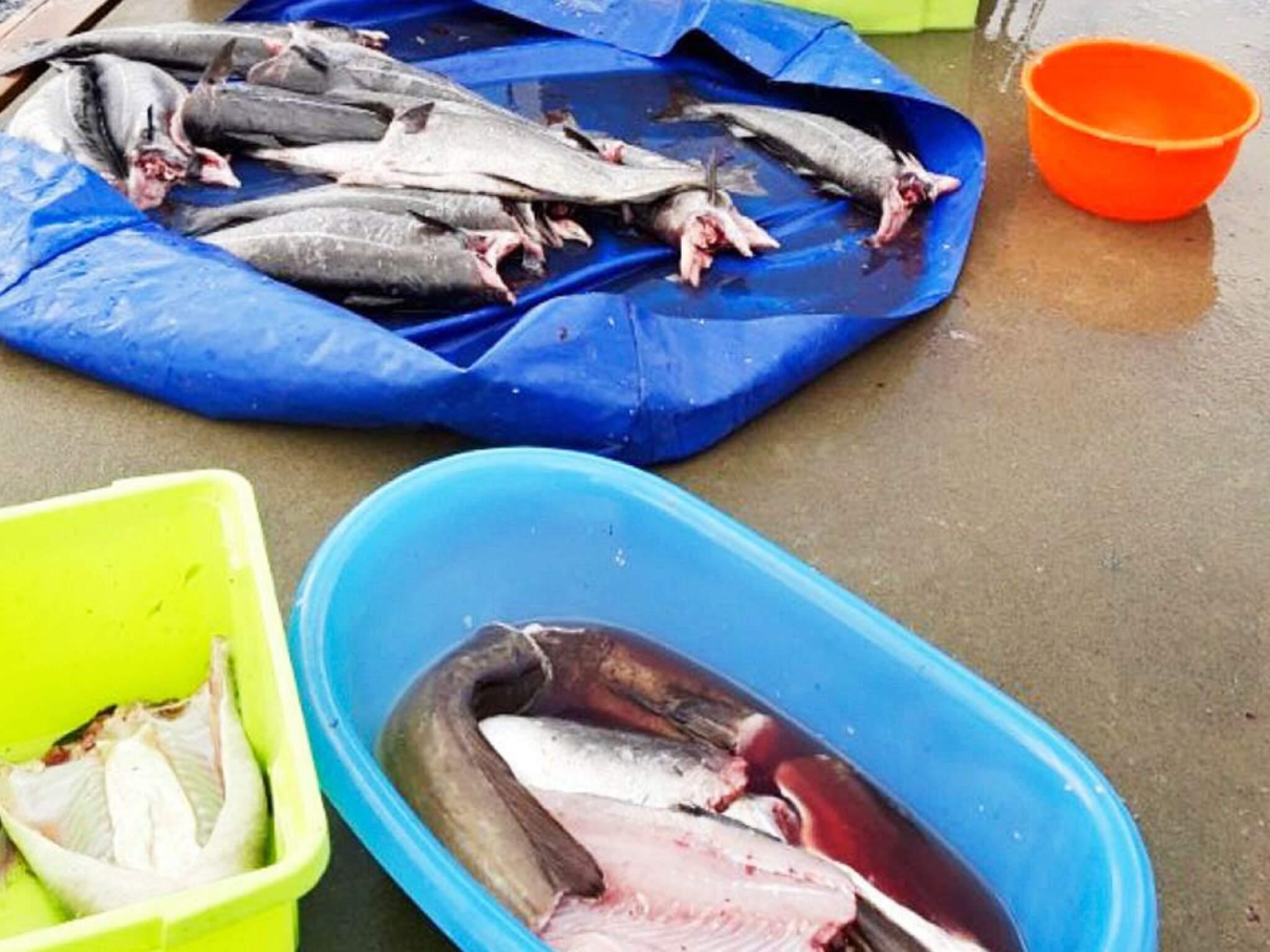 Filetierbank für Fisch vor Ort, siehe Bild. Etwa 400 m zur Anlegestelle des im Voraus mietbaren Bootes: