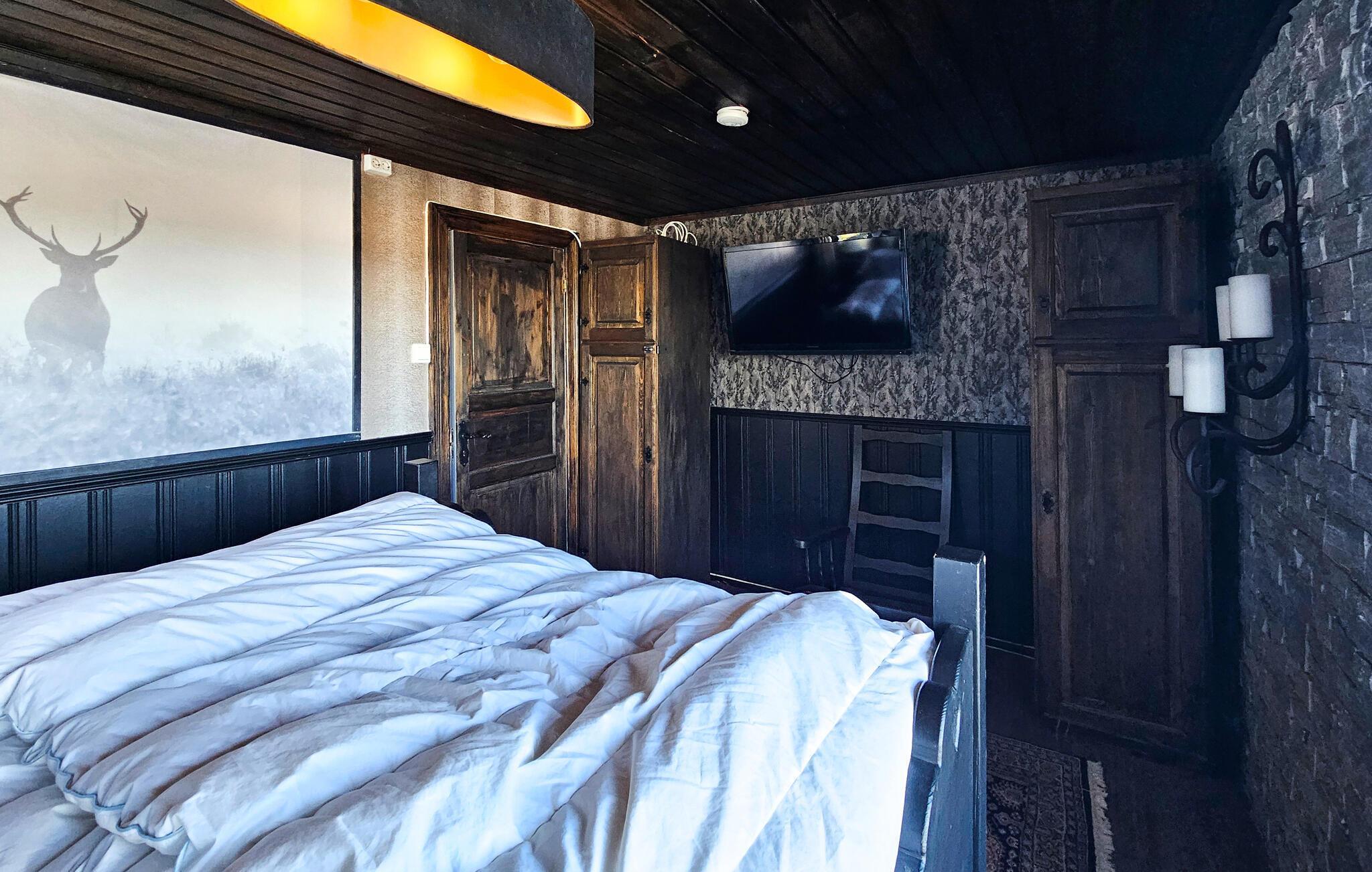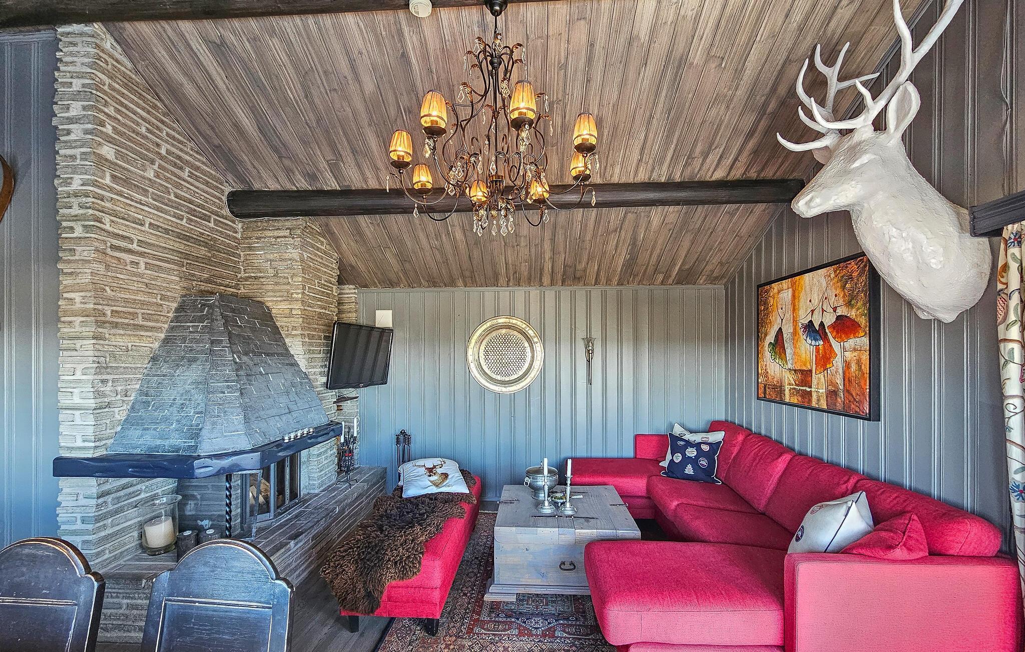Diese großzügige Hütte begrüßt Sie mit behaglich und stilvoll eingerichteten Räumlichkeiten, in denen Sie sich auch mit einer größeren Familie oder einer Gruppe von Freunden wohlfühlen werden. Zaubern Sie herzhafte Gerichte in der offenen Küche und freuen Sie sich auf gesellige Mahlzeiten am langen Esstisch. Gönnen Sie sich wohltuende Momente in der Sauna, lauschen Sie dem Knistern des Kamins bei einer guten Lektüre oder genießen Sie gemütliche Spieleabende im einladenden Wohnzimmer.