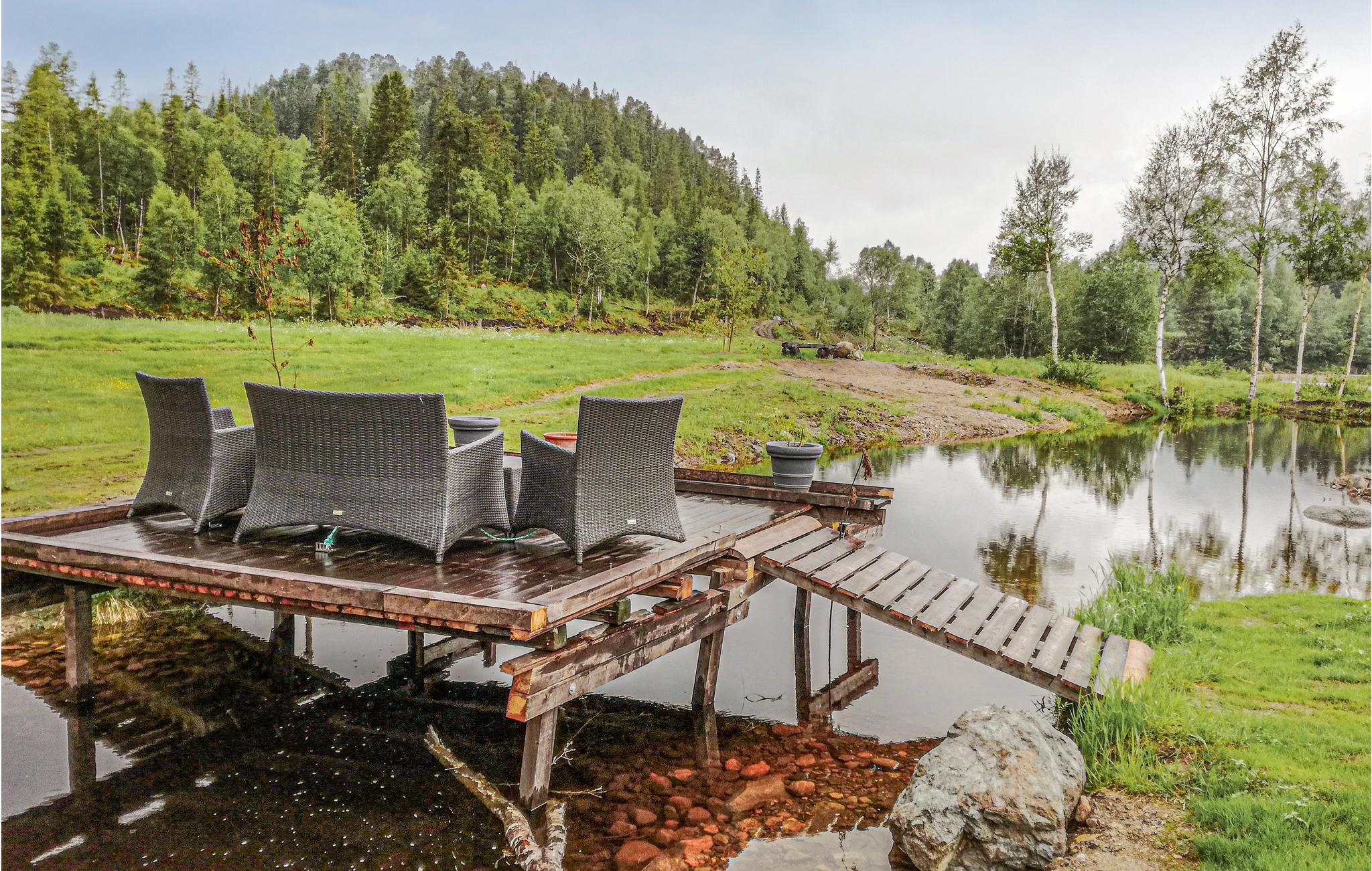 Ein gemütliches Ferienhaus in anmutiger Natur eingebettet, auf einem traditionsreichen Gehöft am Ende eines Hofweges gelegen. Die Geschichte wird auf einzigartige Weise präsentiert und Sie dürfen gern die zum Hof gehörenden Nebengebäude benutzen. Zum Beispiel gibt es einen alten Stall, der in ein tolles Lokal mit Aufenthaltsraum mit dem Namen "Walhalla" verwandelt wurde, wo Sie lokale Gerichte oder den selbstgefangenen Fisch oder Fleisch aus der Jagd vor Ort aufgetischt bekommen können. Der Besitzer kennt alles rund um Jagen und Angeln in dieser Gegend und gibt Ihnen gerne Tipps. Der Hof hat die Jagdlizenz für Elch, Hirsch und Reh und dieses exklusive Jagderlebnis bietet der Besitzer Jägern gegen Gebühr an. Vom Ferienhaus aus haben Sie Panoramaaussicht über Wald, Berge und Fluss. 100 m vom Ferienhaus entfernt fließt durch das Grundstück ein beliebter Lachsfluss, wo Sie in der Angelsaison von Juni bis August Lachs und Meerforelle fangen können; der Besitzer verkauft Angellscheine. Auch die Lachsflüsse Namsen und der Ågårdselva fliessen nicht weit vom Haus entfernt. Hier können Sie auf dem Sofa sitzen und mit ein bisschen Glück Elch, Hirsch und Reh sehen. In der Gegend gibt es eine Reihe markierter Wanderpfade, deren einige hoch zu den Berggipfeln führen, welche allein wegen der märchenhaften Aussicht einen Besuch wert sind. Ein Teil des Ferienhausgrundstücks liegt auf einem Naturreservat, 2-300 Meter vom Haus entfernt ist ein schöner Wasserfall. Der Hauseigentümer vermietet auch ein Boot, das bei Sør-Namsenfjorden, ca. 3 Autominuten entfernt liegt. Mit diesem Ferienhaus bekommen Sie ein einzigartiges Naturerlebnis und einen Hauswirt, dem viel daran gelegen ist, Ihnen einen perfekten Urlaub zu bieten. Auch die Abholung vom Flughafen kann organisiert werden. Beliebt ist auch die Gegend um Flatanger mit vielen Aktivitäten. Besonders Kletterer haben Flatanger für sich entdeckt und es gibt zudem Adlersafaris. Erleben Sie Geschichte im Urlaub auf der Utvorda Festung.
