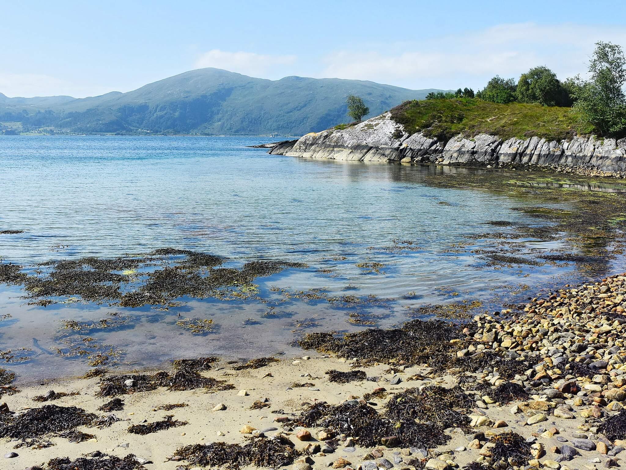 Schön gelegenes Ferienhaus auf einem stillgelegten Bauernhof mit eigenem Strandufer und Panoramablick zum fischreichen Vanylvsfjord.