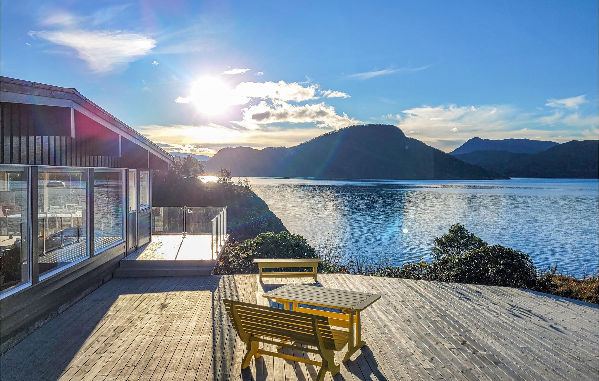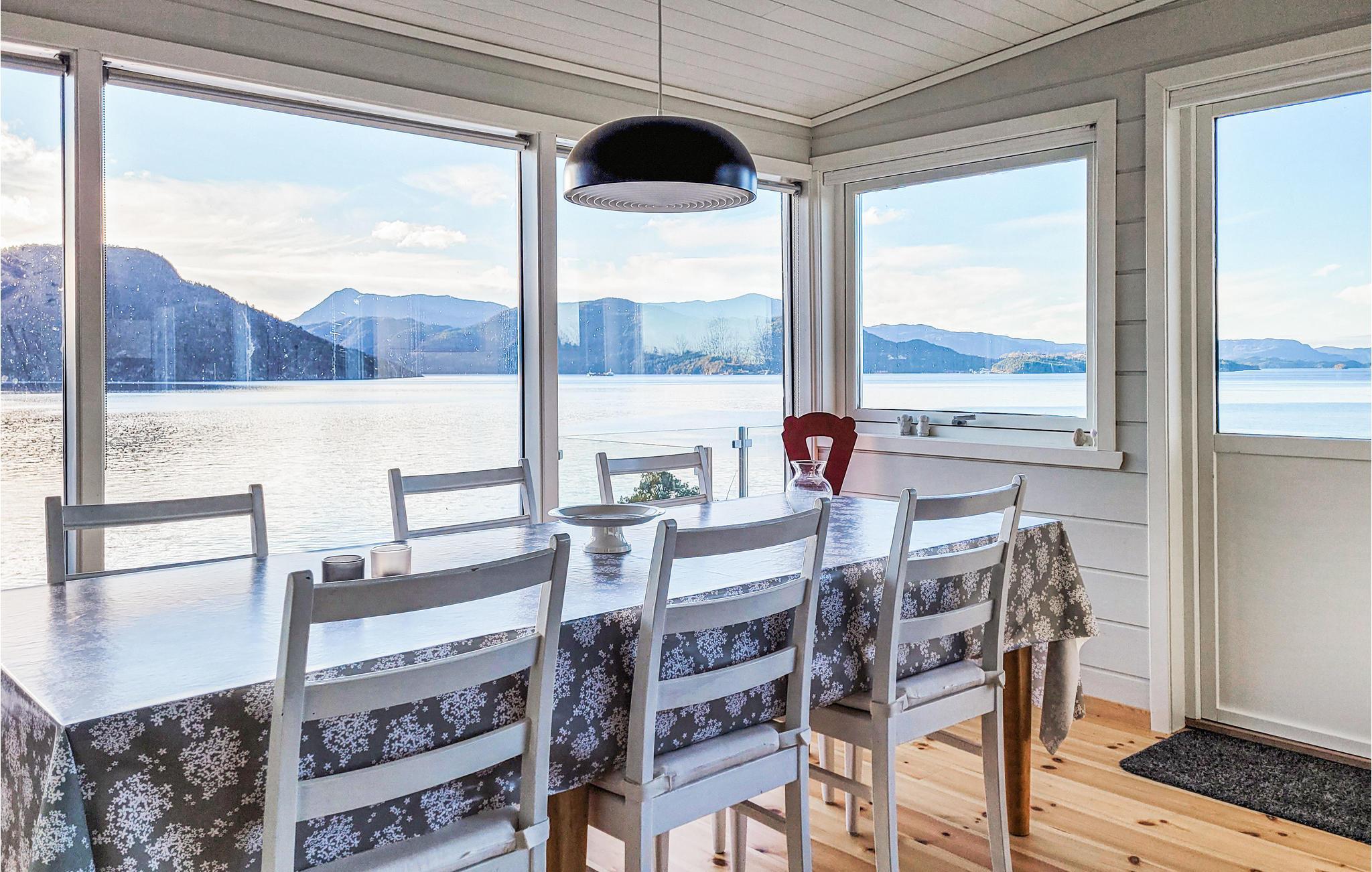 Der Blick auf den Fjord, den Sie hier genießen, ist geradezu atemberaubend. Das helle und einladende Haus begrüßt Sie mit einer wohnlichen Einrichtung. Die Panoramaverglasung des Wohnbereiches sorgt dafür, dass Sie die fantastische Aussicht auf Wasser und Berge ungehindert genießen können, so sitzen Sie hier nach den Mahlzeiten sicher oftmals noch lange am Esstisch zusammen. Nach einem aktiven Tag mit Baden im Fjord oder Angelabenteuern gibt es nichts Schöneres, als gemeinsam auf dem bequemen Sofa zu entspannen, im Kamin anzufeuern und beim Knistern der Flammen schon Pläne für den nächsten Urlaubstag zu schmieden.