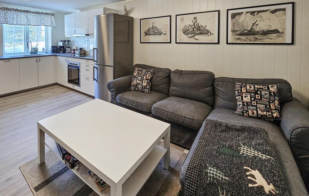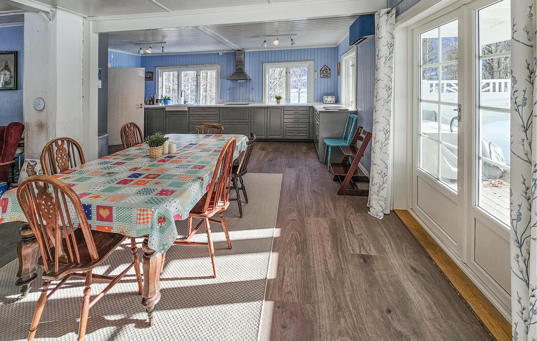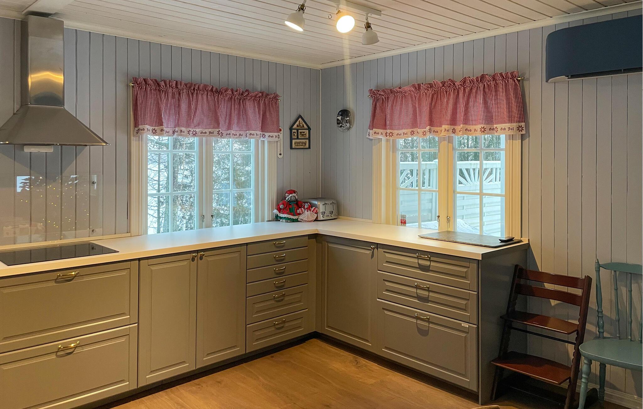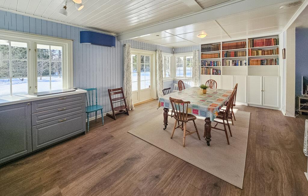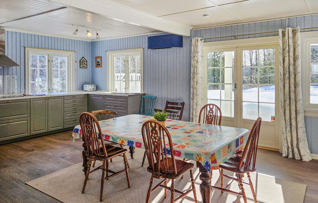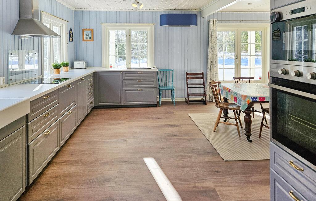 Ihr Ferienhaus begrüßt Sie direkt am See Krøderen zu geruhsamen Urlaubserlebnissen inmitten schönster Naturgebiete. Die Kombination aus klassischen Holzelementen und modernen Akzenten schafft eine einladende und stilvolle Atmosphäre. Beginnen Sie den Tag am Esstisch bei einem gemeinsamen Frühstück. Schwingen Sie mit der ganzen Familie die Kochlöffel in der großen, offenen Küche. Die verschiedenen Sofaecken versprechen entspannte Stunden bei geselligem Beisammensein. Hier können Sie es sich mit einem Buch gemütlich machen oder gemeinsame Spieleabende veranstalten. Öffnen Sie die Türen zu der großzügigen Terrasse, die zum Sonnenbaden, Grillen oder einfach nur zum Entspannen an der frischen Luft einlädt. Der Garten bietet genügend Platz für Aktivitäten im Freien. Spielen Sie hier mit Ihren Kindern und erkunden Sie die umliegende Natur.